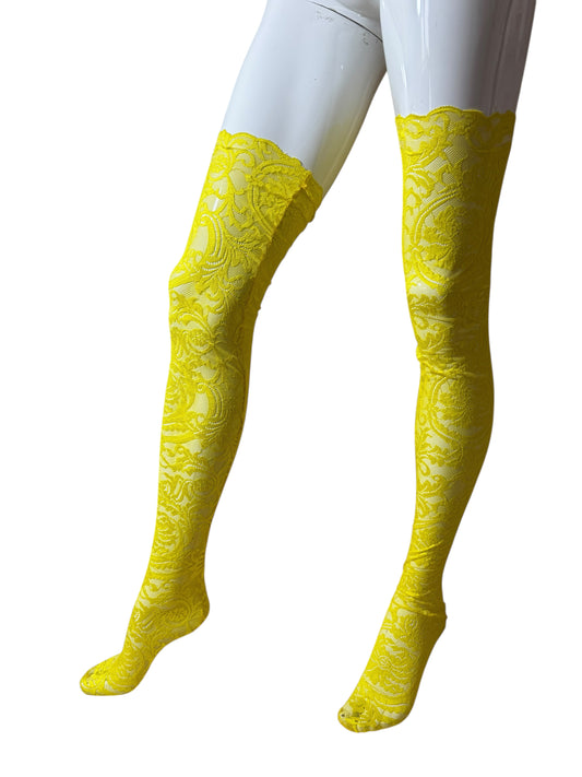 Collant autoreggenti gialli in pizzo Barocco Versace – Taglia M