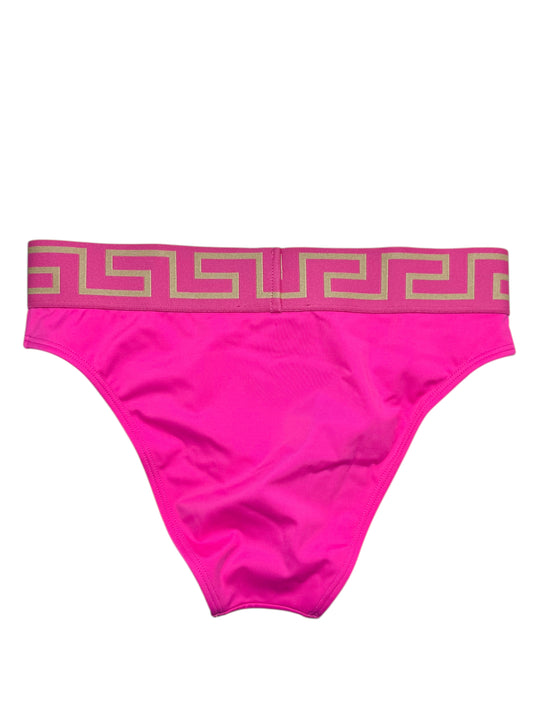 Costume da bagno donna VERSACE fucsia – Slip con fascia Greca dorata – Taglia 1