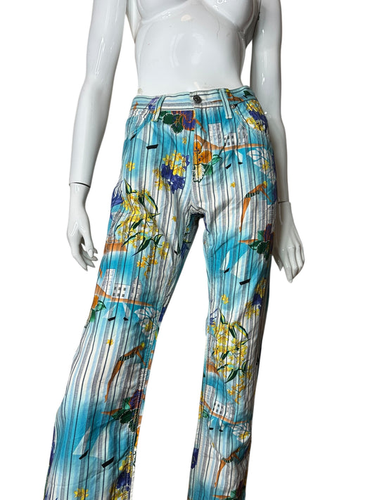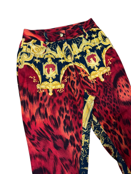 Pantaloni vintage Gianni Versace “Istante” tg 44 stampa barocca e animalier