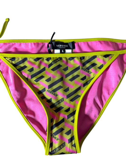 Slip Bikini Donna Versace con Lacci – Fantasia Geometrica Rosa/Giallo Fluo – Taglia 4