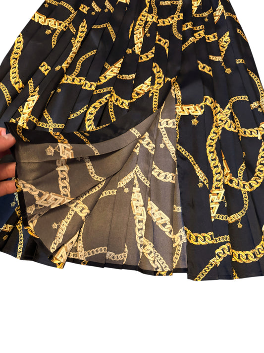 Gonna Plissé Versace Originale Taglia 38 - Motivo Catene Oro - Made in Italy