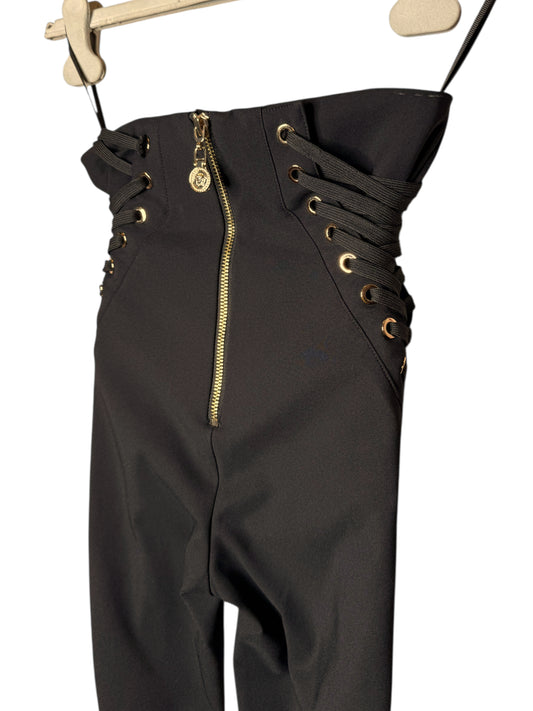 Pantaloni corsetto a vita alta Versace – Neri con dettagli Medusa – Taglia IT 38