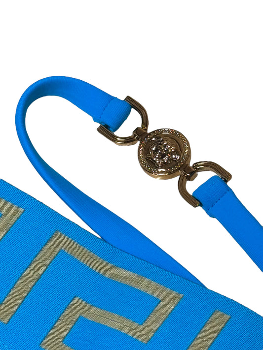 Slip Bikini Versace Donna Azzurro – Greca e Medusa con Cinturino, Taglia 1, Made in Italy