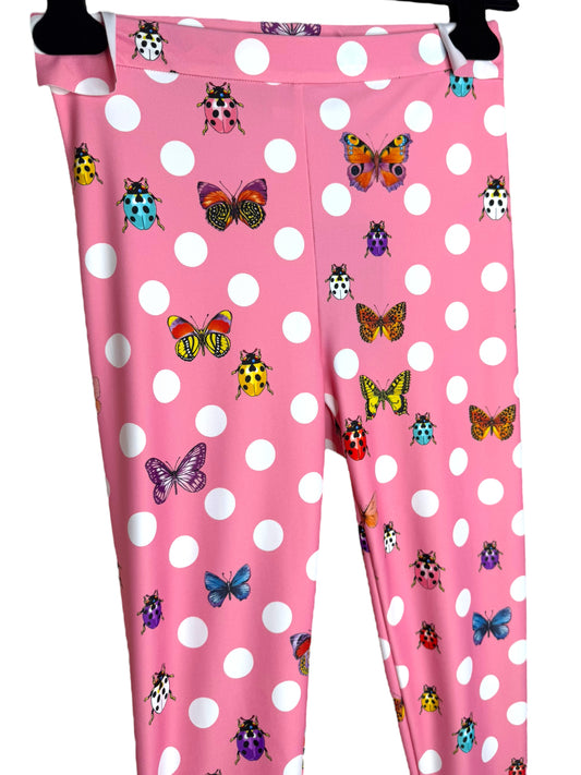 Leggings Versace Donna Tg. 38 – Fantasia Pois Rosa con Farfalle e Coccinelle – Made in Italy