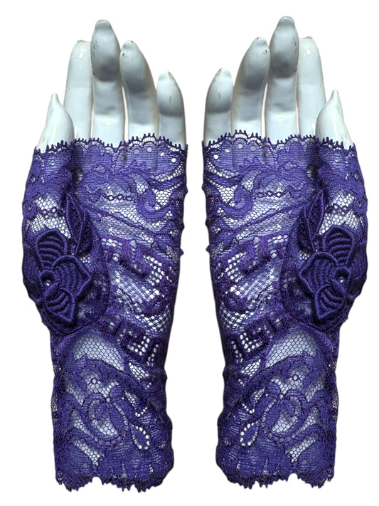 Guanti pizzo viola Versace – Ricamo floreale – Taglia 7,5 (M) Made in Italy
