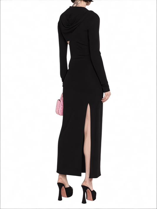 Versace Abito Lungo Nero con Cappuccio e Cut-Out Laterale - Taglia IT 38 - Made in Italy