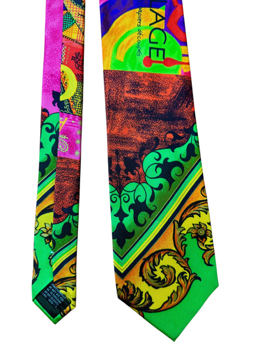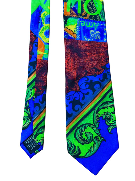 Cravatta vintage Gianni Versace seta multicolor stampa patchwork barocco