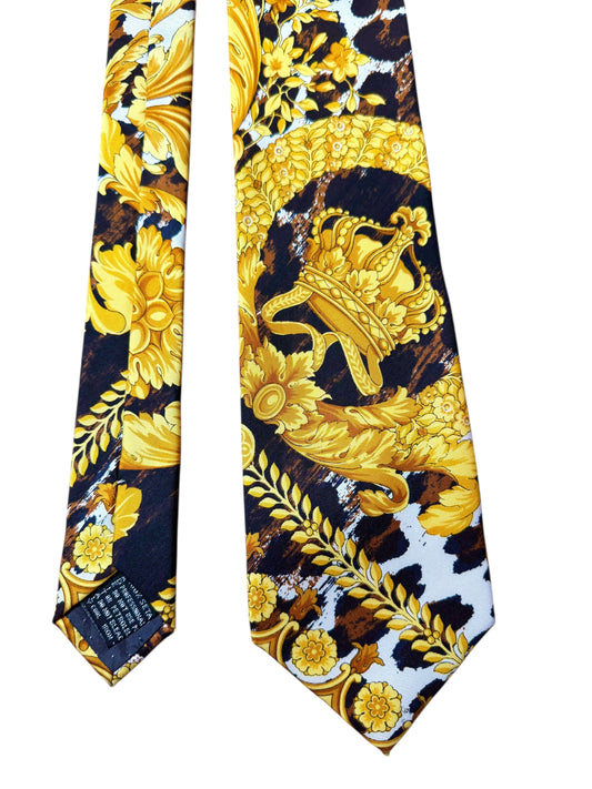 Cravatta vintage Gianni Versace seta stampa Wild Barocco animalier