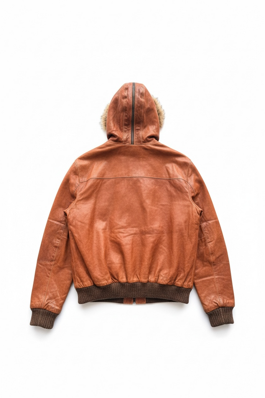 Giacca pelle vera con cappuccio e pelliccia - Made in Italy