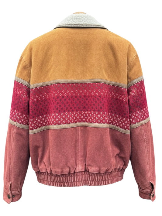 Giacca shearling vintage patchwork pelle scamosciata foderata montone taglia 46