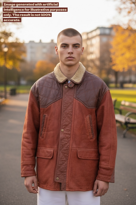 Giacca shearling uomo marrone montone naturale vintage taglia 52