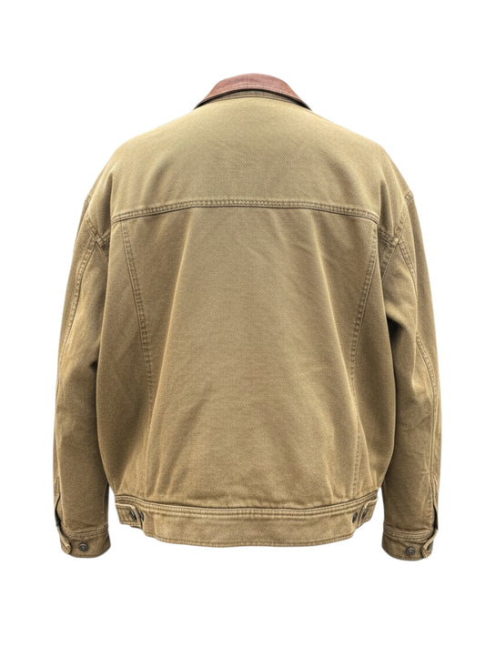 Giacca Camel Collection in cotone imbottita con colletto in pelle vintage