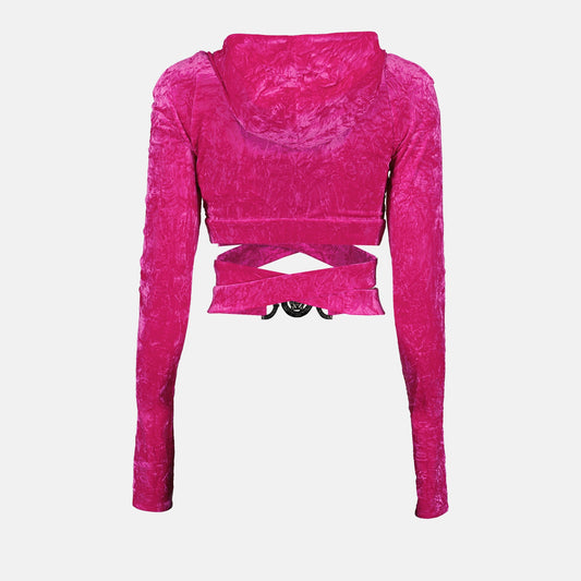 Versace top corto rosa con cappuccio e cintura Medusa - taglia 38 IT