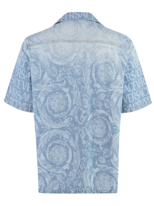Camicia Versace in denim con stampa all-over Medusa – nuova con cartellino