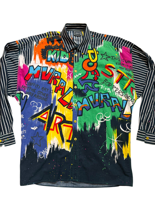 Versace Vintage Camicia Uomo Graffiti Multicolor a Righe Taglia S