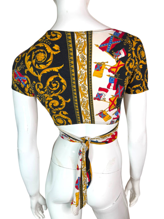 Top vintage Versus Gianni Versace – stampa barocca e bandiere, taglia unica