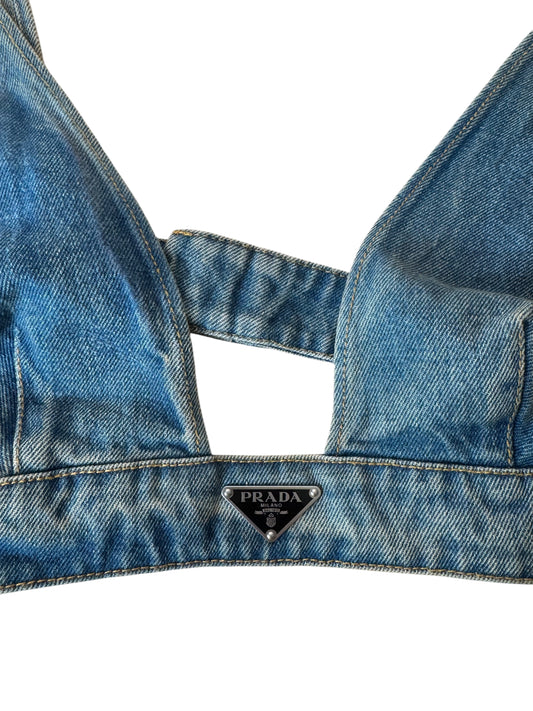 Top Bralette in Denim Prada - Taglia 44 IT - 100% Cotone - Made in Italy