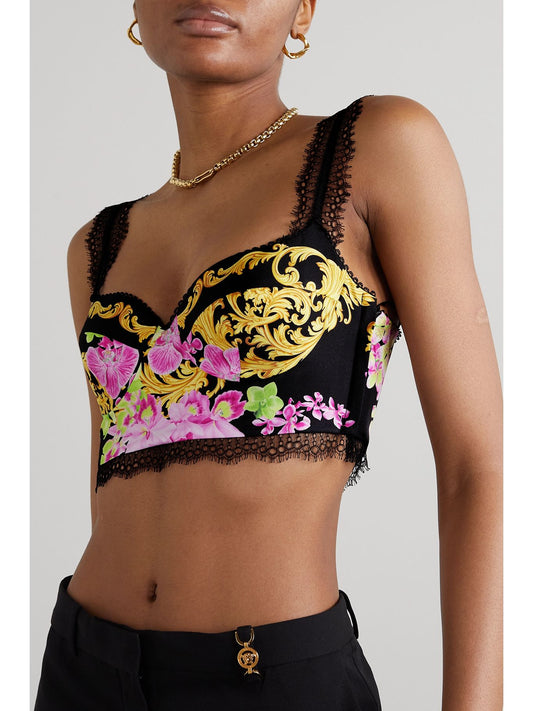 Top corsetto Versace floreale Barocco in seta con pizzo – Taglia IT 46