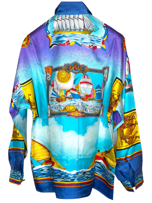 Camicia vintage donna Versace Sport in seta stampa nautica - Tg. 38