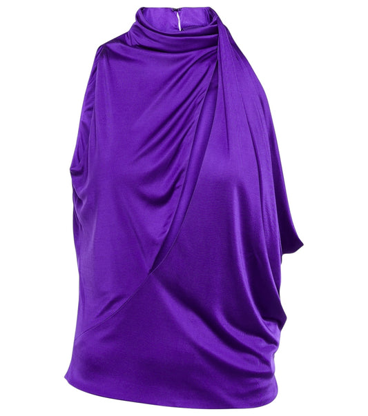 Top VERSACE Viola Drappeggiato con Scollo Profondo – Taglia 38 – Made in Italy