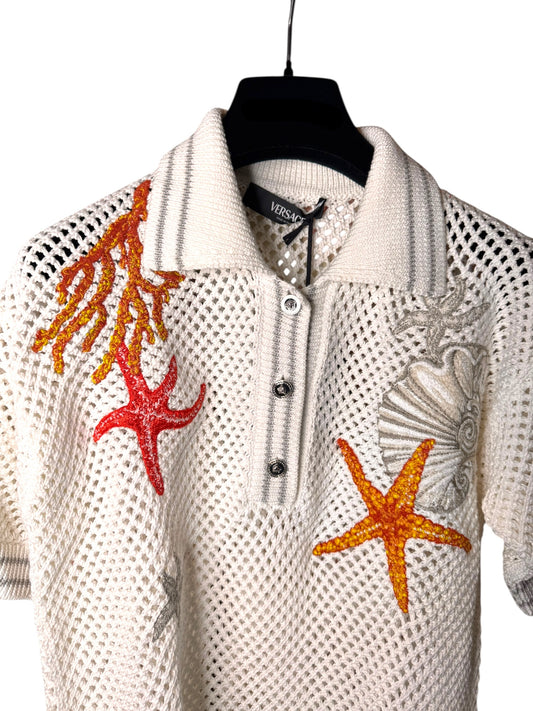Versace polo traforata in cotone con ricami coralli Made in Italy taglia 36