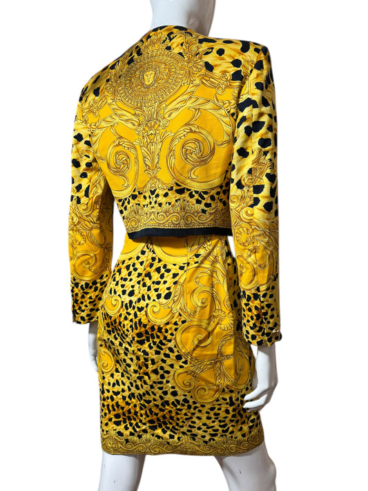Completo vintage Istante by Gianni Versace anni ’90 – Giacca + Gonna con stampa barocca e animalier