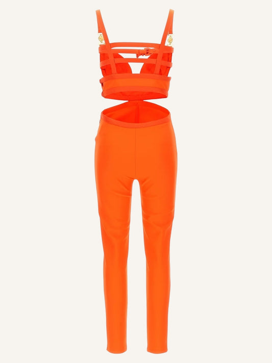 Jumpsuit Versace Cut-Out Arancione Fluo, Dettagli Medusa, Taglia 42