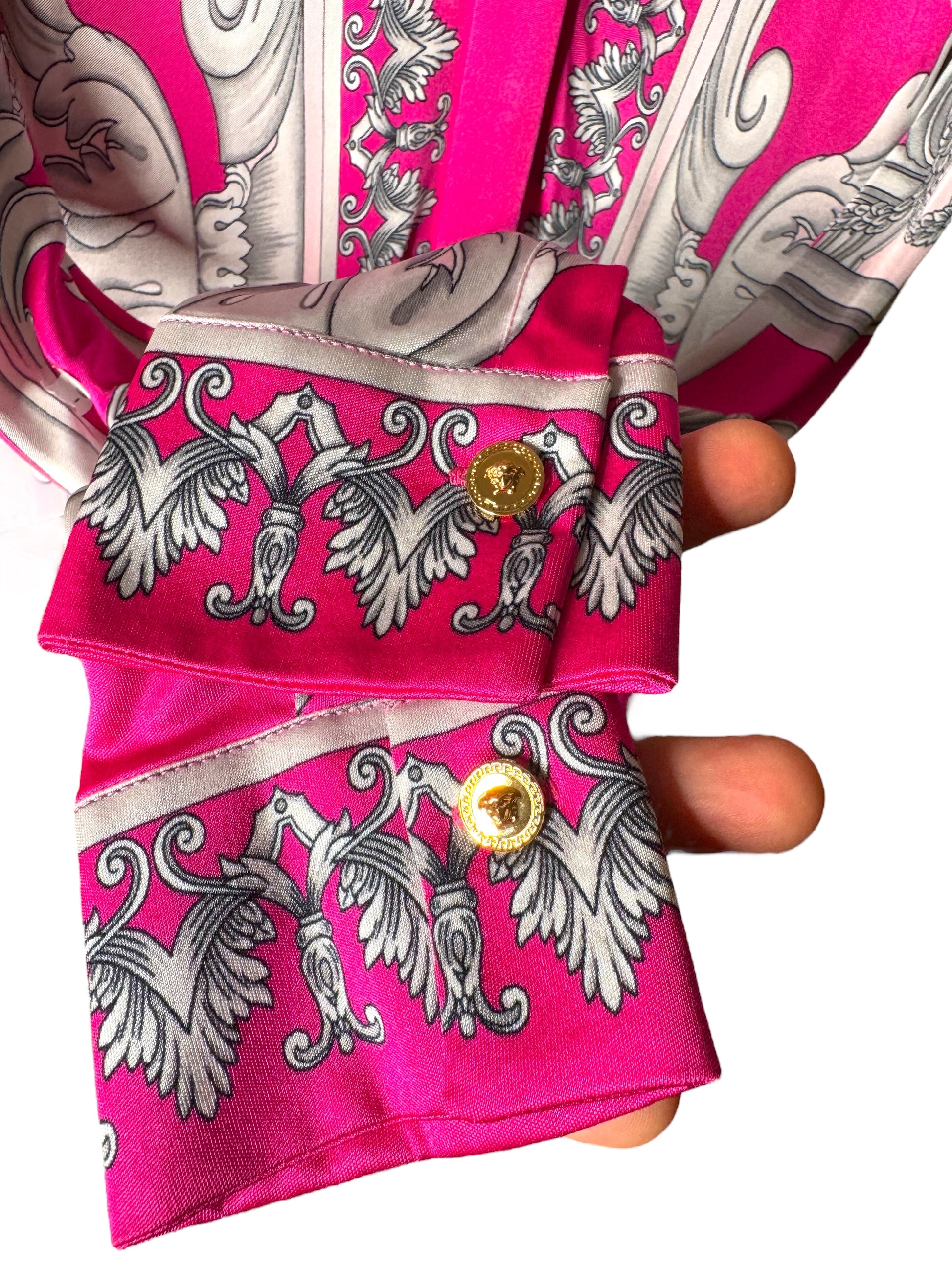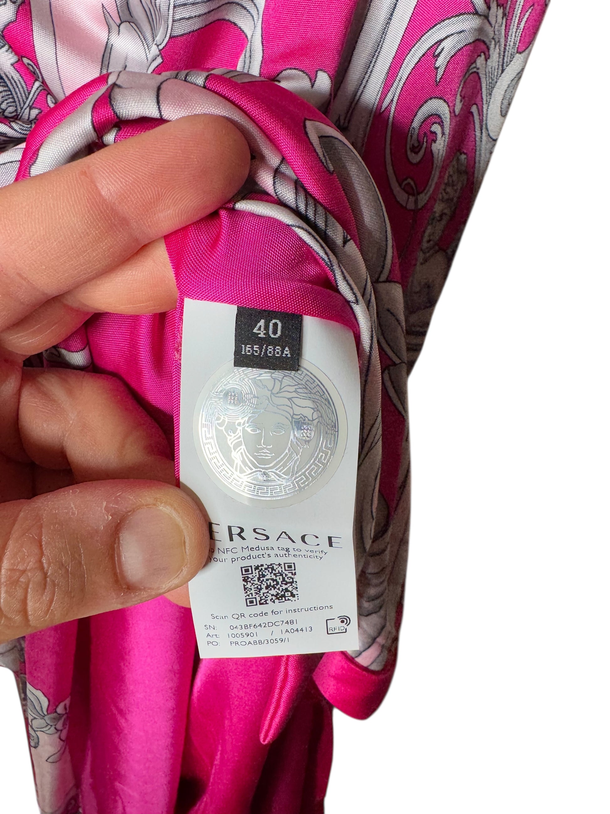 Abito chemisier Versace barocco rosa/fucsia stampa cherubini TG 40 – Nuovo