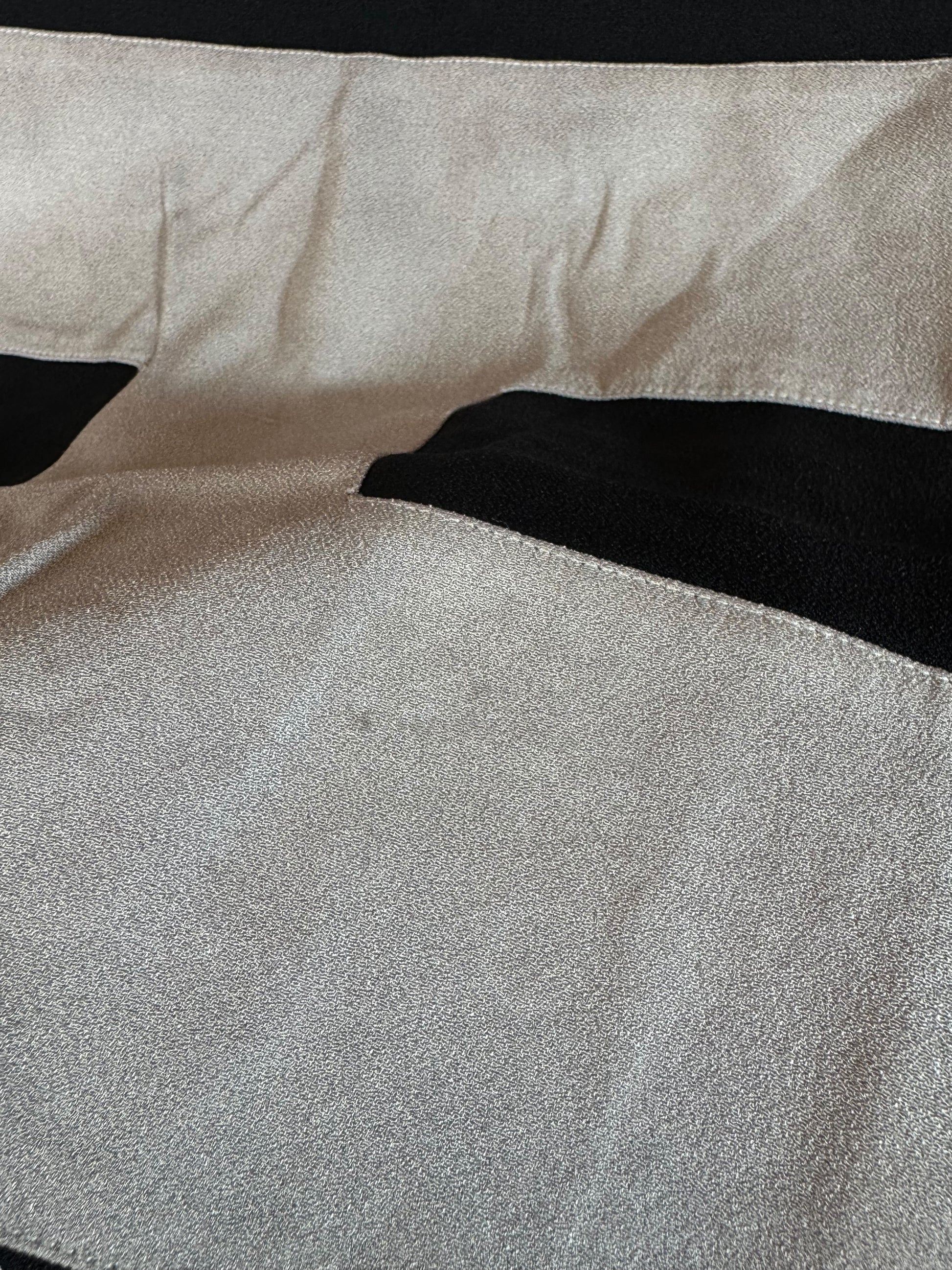 Abito vintage Moschino Cheap and Chic, Made in Italy, caratterizzato da un design geometrico che forma in modo creativo la parola “CHIC” attraverso blocchi di colore rosso, nero e grigio. Questo capo unico esprime appieno l’estetica giocosa e sofisticata del brand, diventando non solo un abito, ma un vero e proprio pezzo di design.