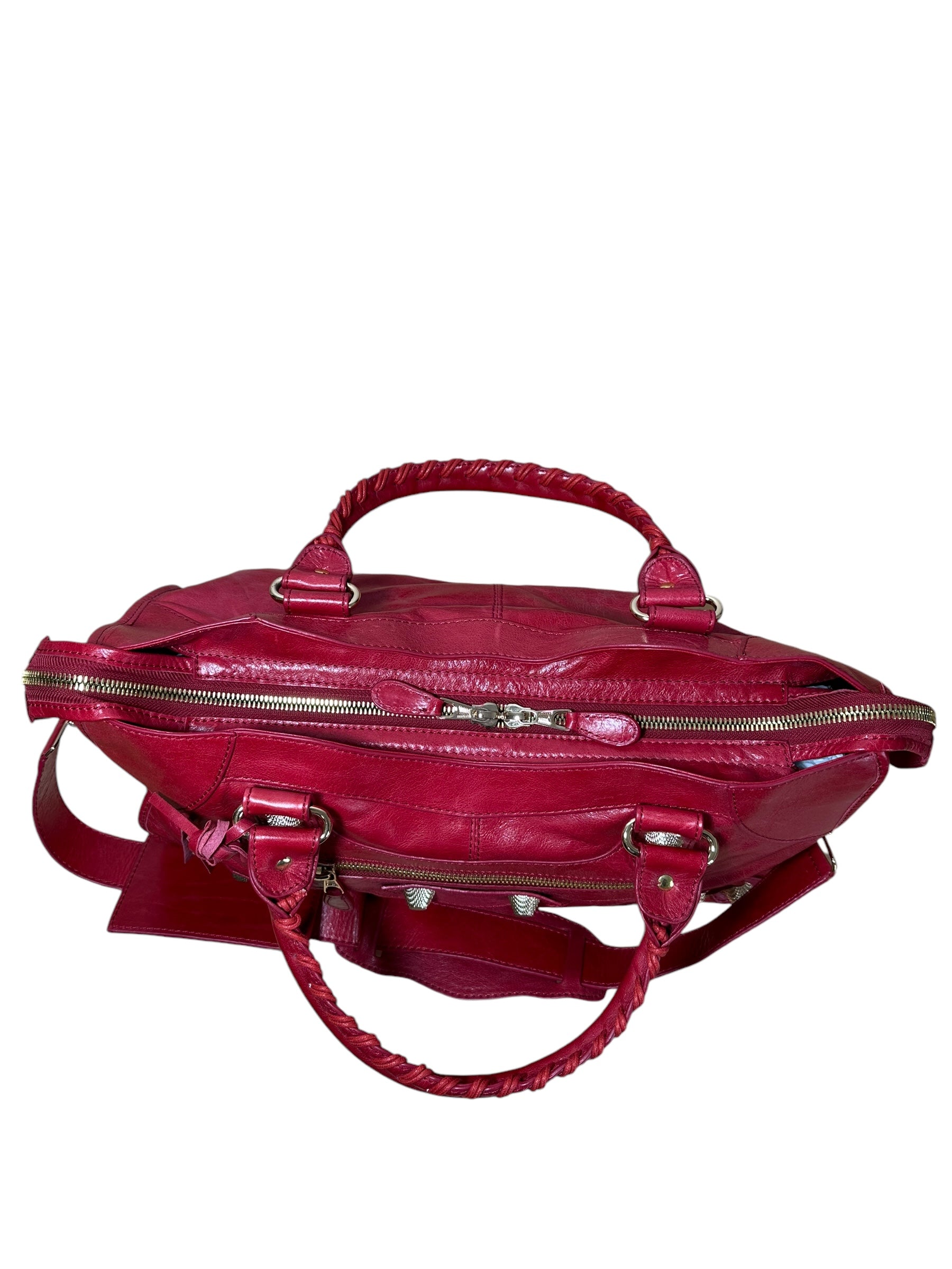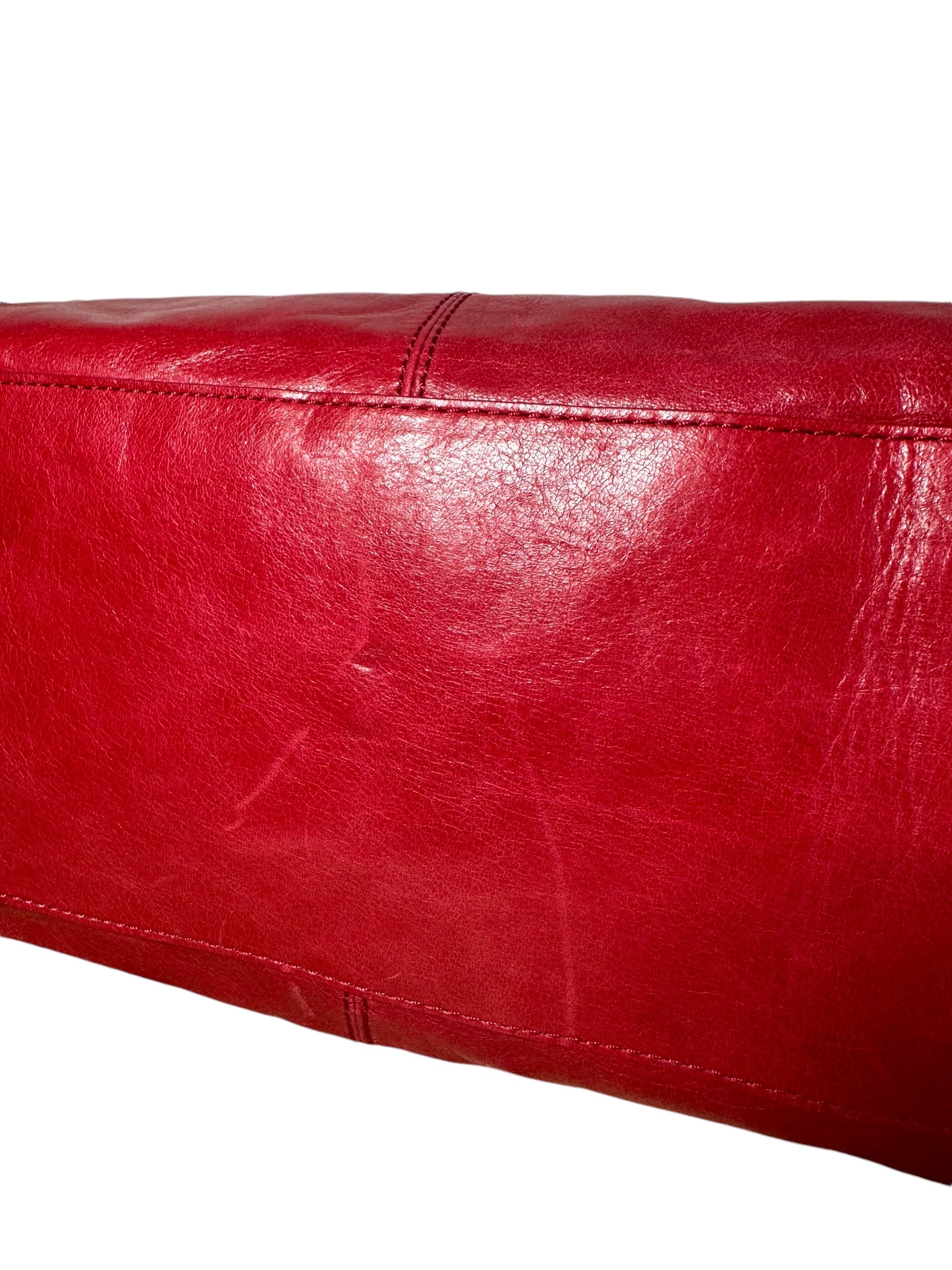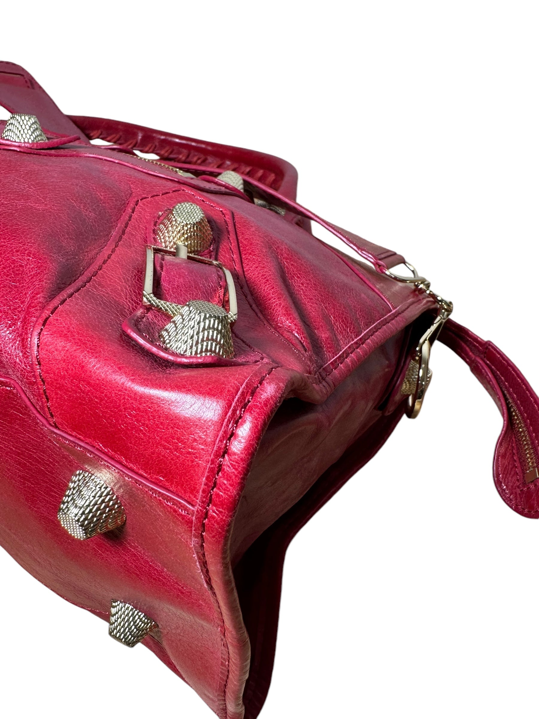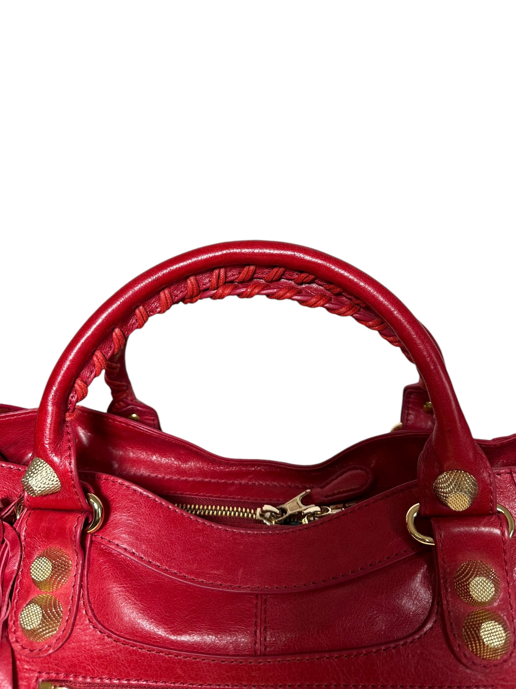 Balenciaga borsa city vintage in pelle rossa con hardware in metallo dorato, tracolla rimovibile e chiusure con zip in metallo. Viene spedita con dust bag. Micro segno su un angolo.