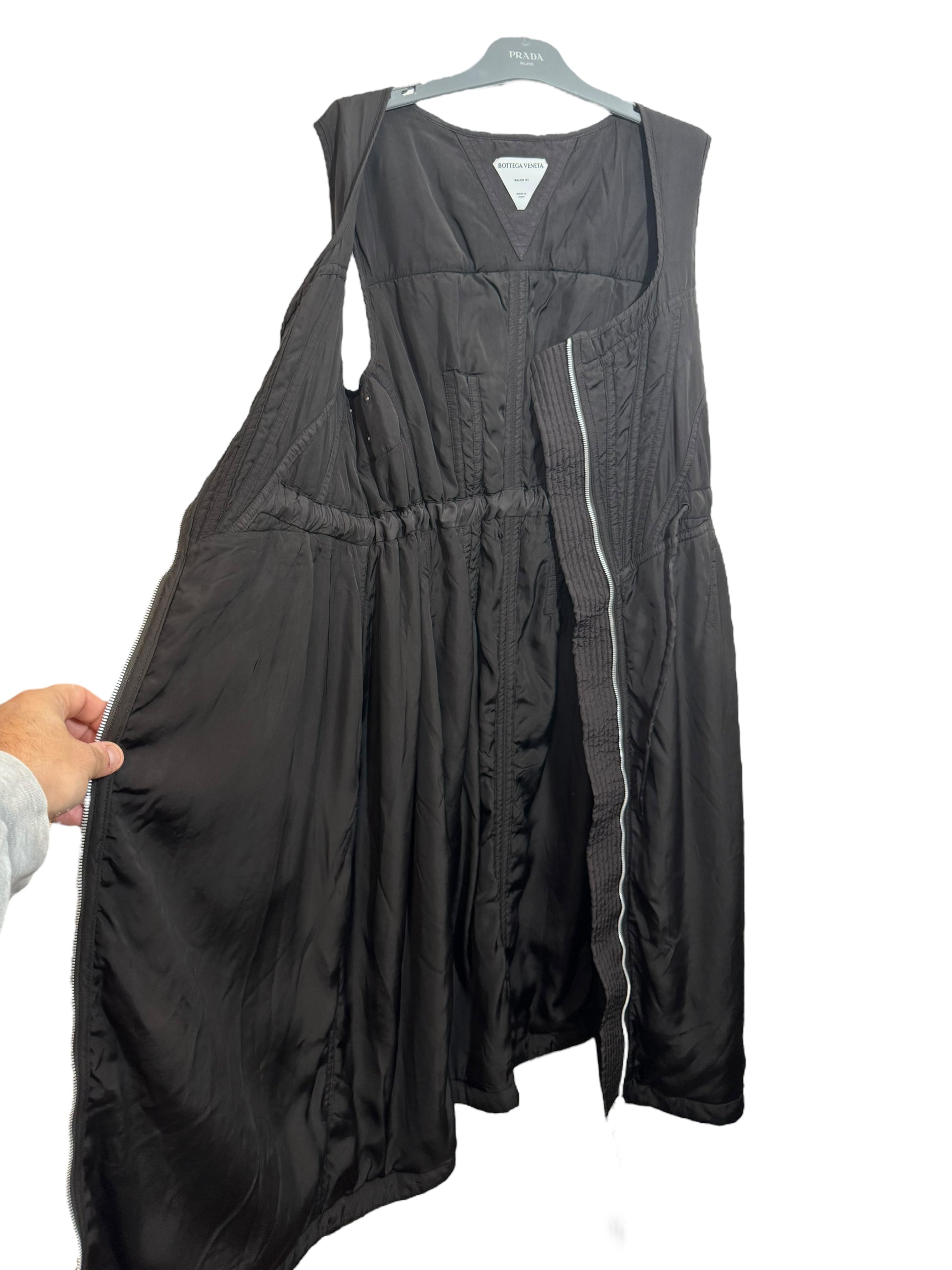 Bottega veneta abito smanicato Con zip frontale e coulisse in vita, in misto seta effetto piumino. Taglia 44