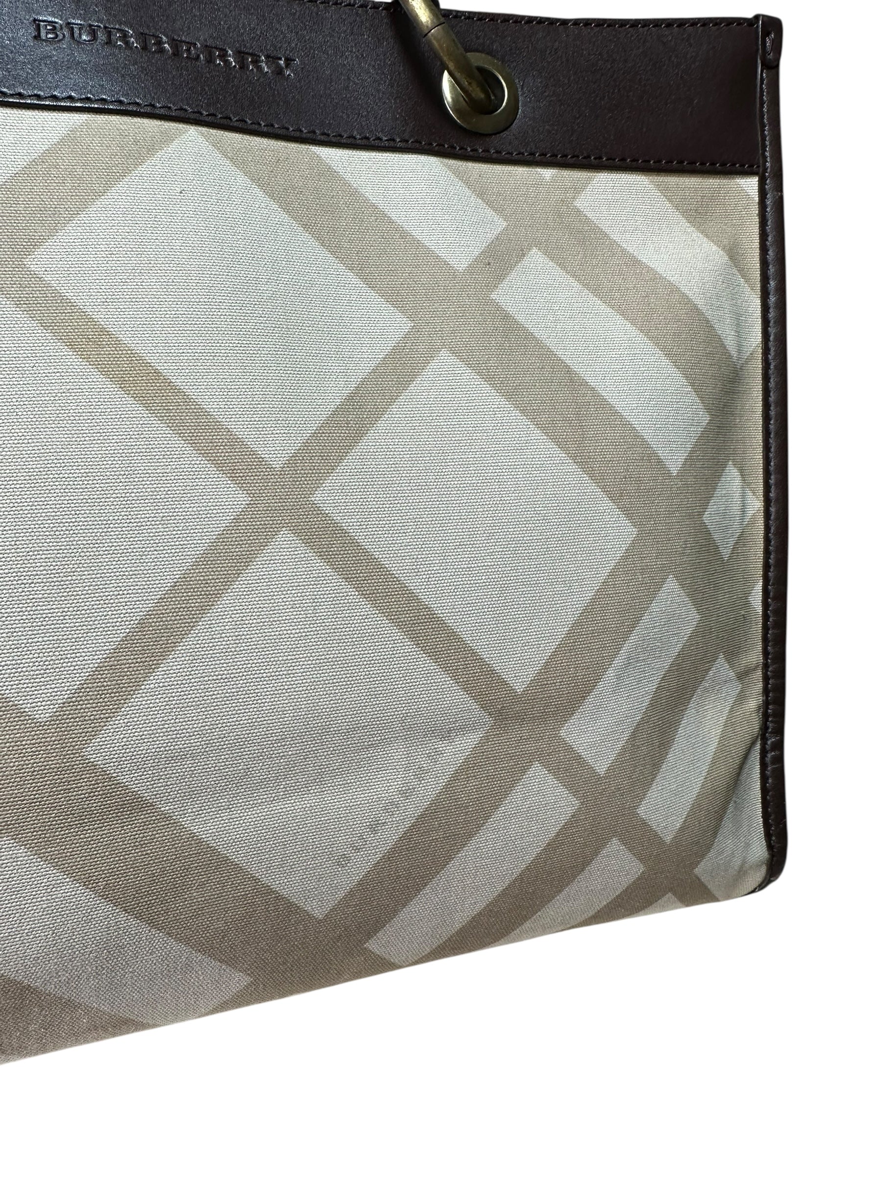 Borsa shopper Burberry London vintage in tela con profili in pelle