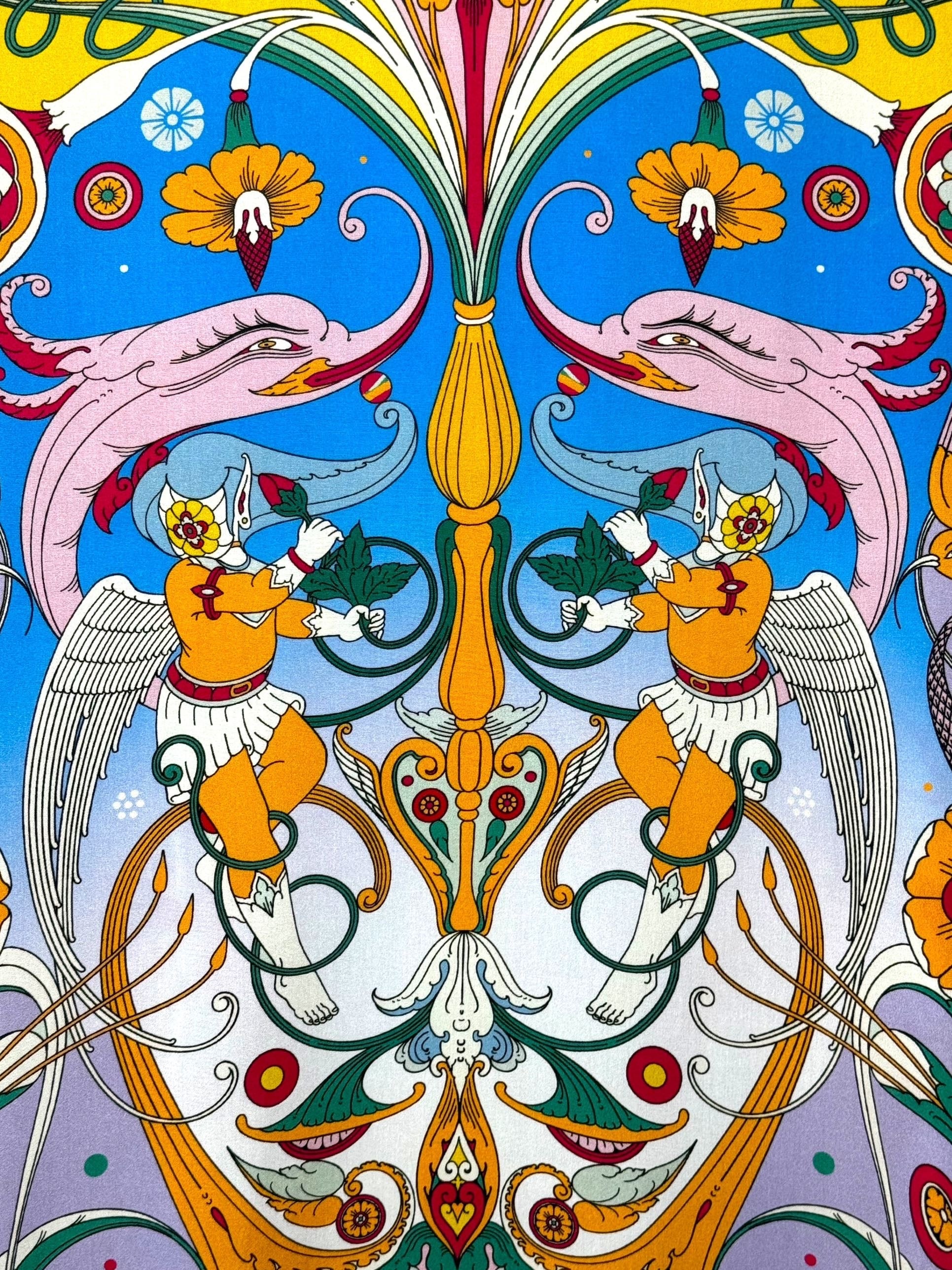 Come i fiori che sbocciano continuamente e danno vita a nuova bellezza, l'amore del primo uomo e della prima donna - come nel caso di Rama e Sita - continua a fiorire e a generare nuovo amore in ogni fase del loro viaggio. L'angelo che custodisce la bellezza del loro amore simboleggia la protezione e la guida divina nella loro relazione, assicurando che il loro amore rimanga puro ed eterno col passare del tempo. Così, la loro storia d'amore diventa un simbolo di eternità e di inflessibile bellezza