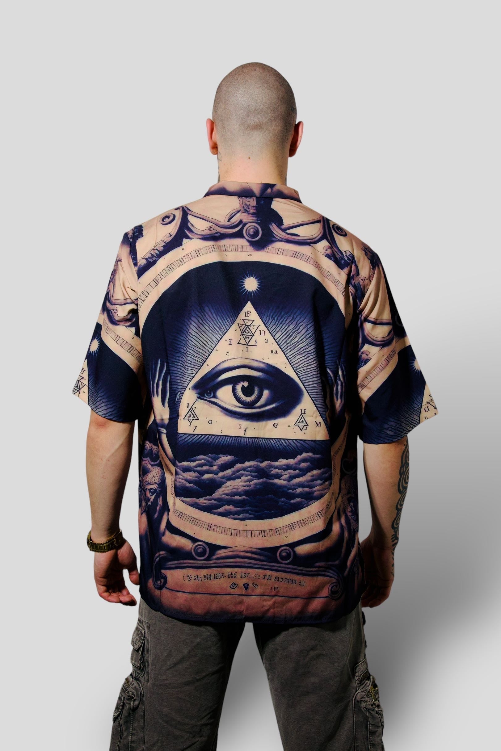 Questa camicia rappresenta la consapevolezza del mondo capitalista in cui viviamo, dove la società è strutturata come una piramide dove pochi individui detengono il potere e dominano sulla maggioranza. Indossare questa camicia simboleggia l'impegno nel comprendere questa realtà e nel cercare di cambiarla. Sul retro della camicia è presente un disegno della piramide con l'occhio che tutto vede, simbolo di un sistema che controlla e sorveglia la società. La camicia rappresenta un invito a prendere coscienza della realtà in cui viviamo e a lottare per una società più equa e giusta.