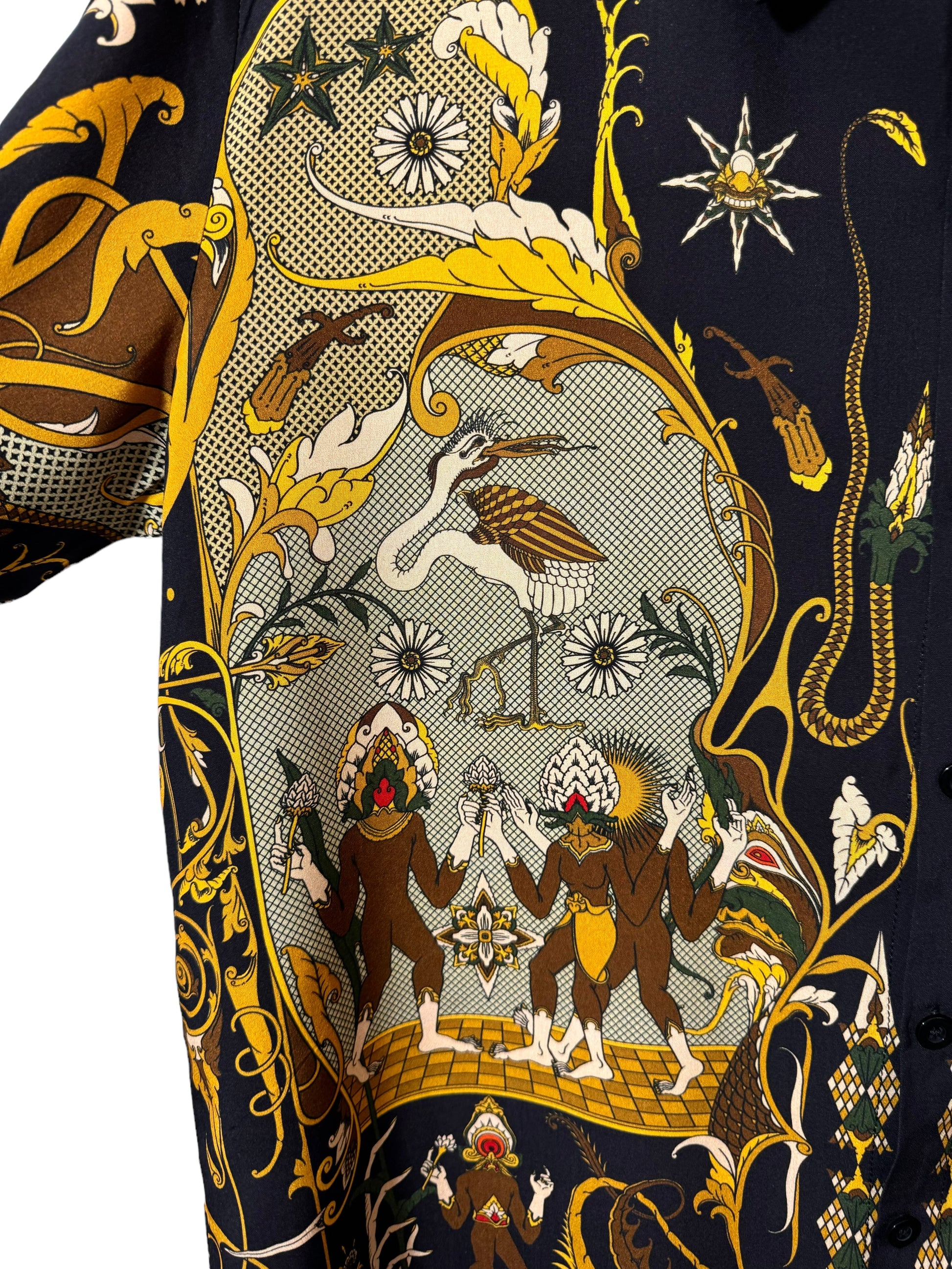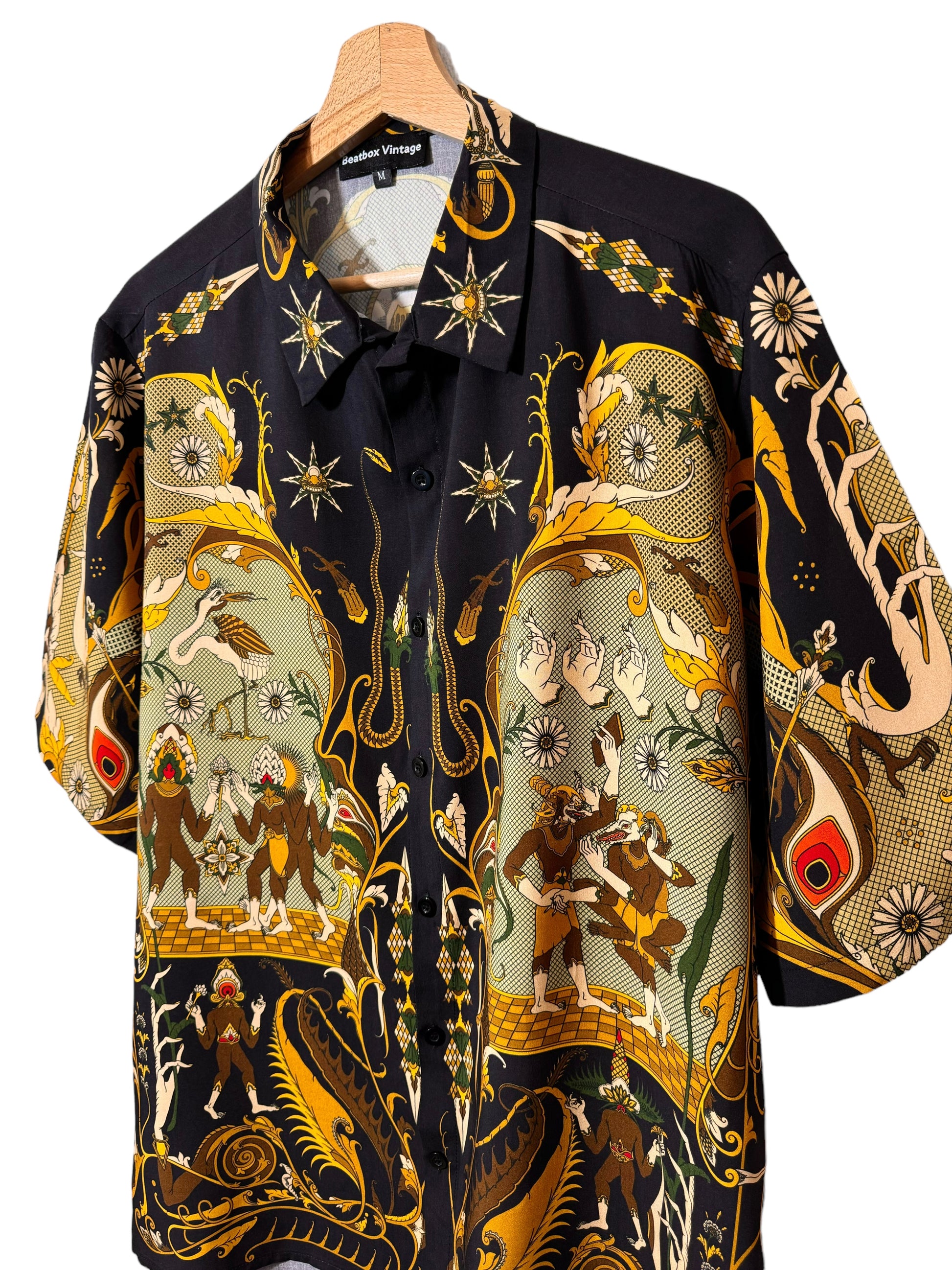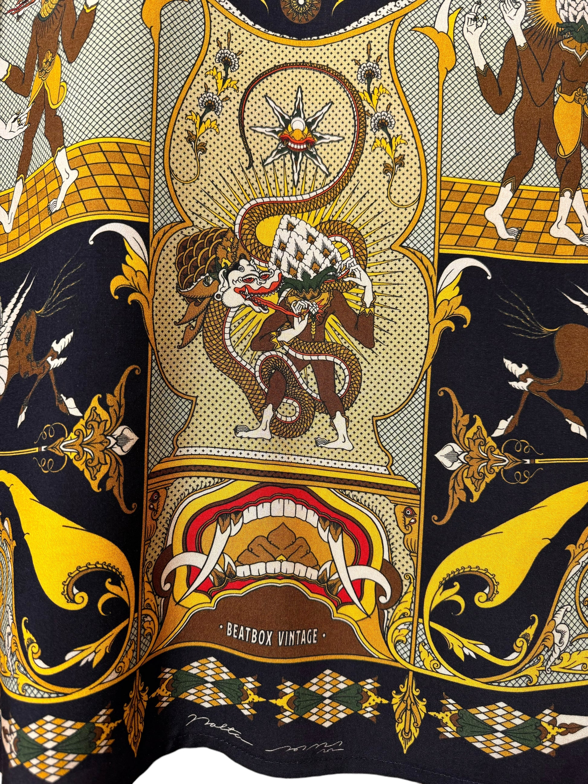 Camicia Fractal beatbox vintage a maniche corte con bellissima stampa disegnata da un artista indonesiano per noi.