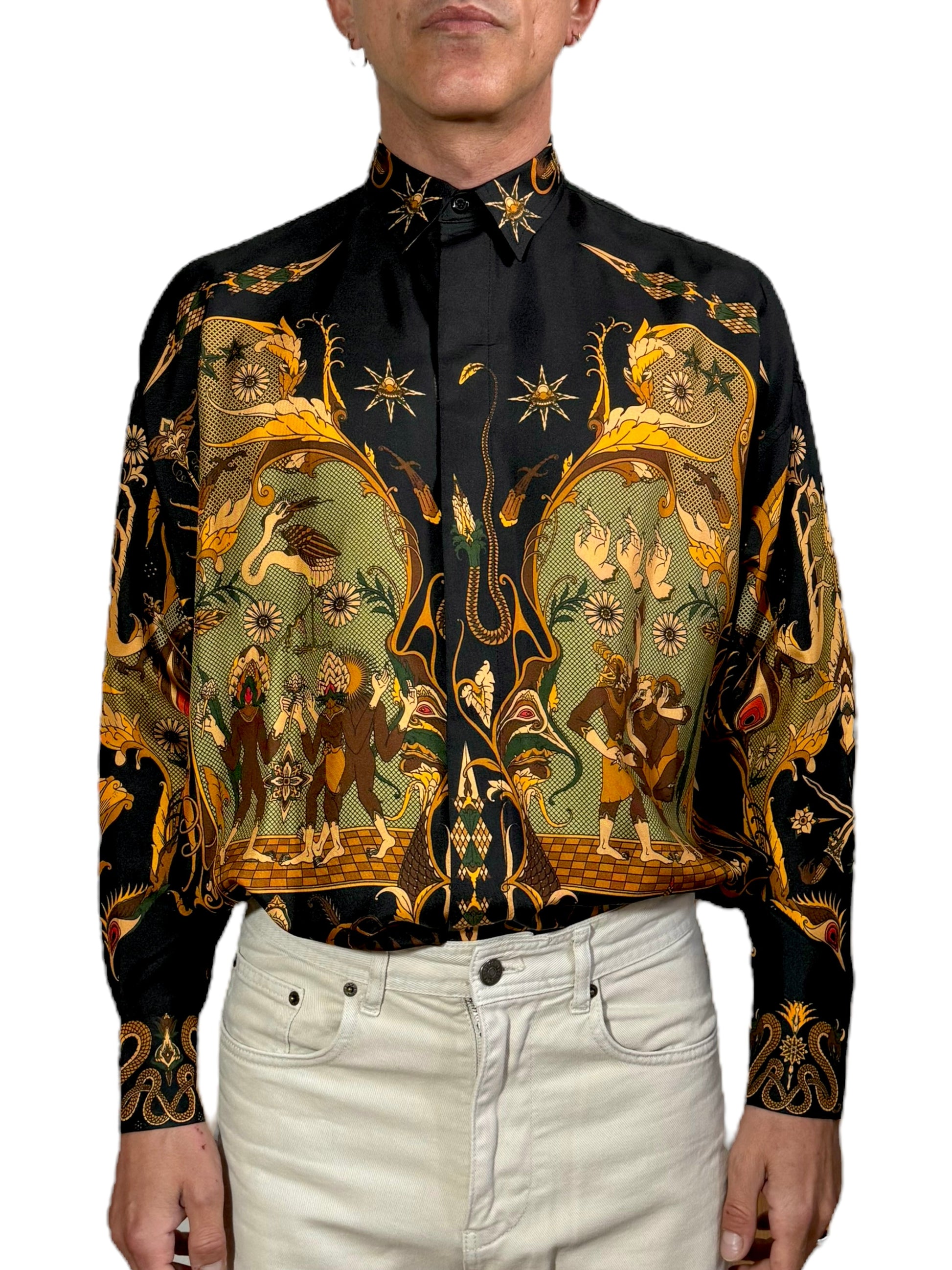DESIGN ESLUSIVO - Il design in stile javanese di Nalta, un giovane artista indonesiano, è un'opera di arte particolarmente evocativa. Il disegno rappresenta la ricerca della verità nella vita e le sfide che incontriamo lungo il cammino. Il drago e il demone simboleggiano la tentazione. Questo design meraviglioso è un invito a visitare le profondità del nostro essere interiore per trovare risposte.