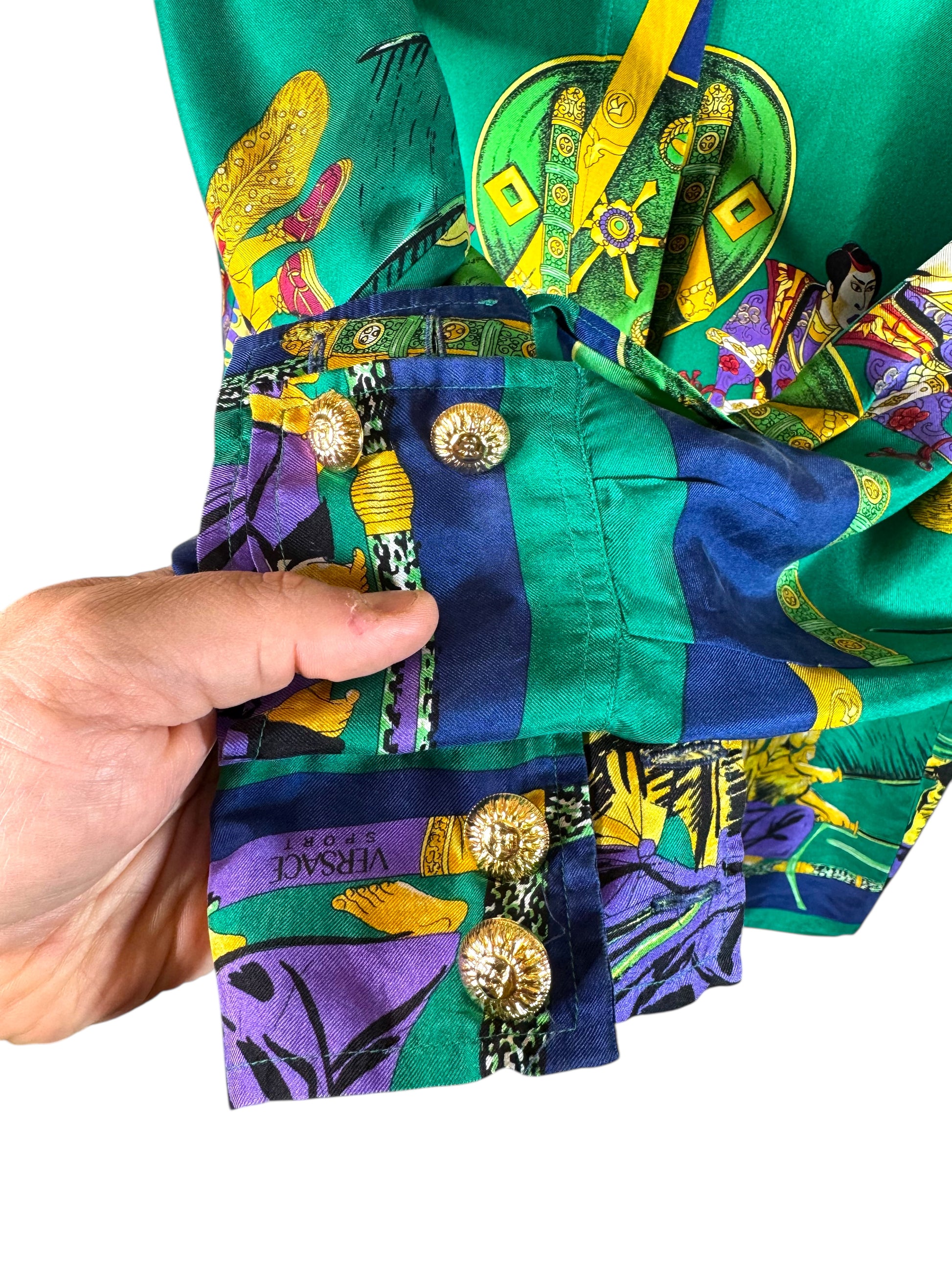 Camicia Gianni Versace Sport vintage in seta stampa Samurai – Made in Italy.