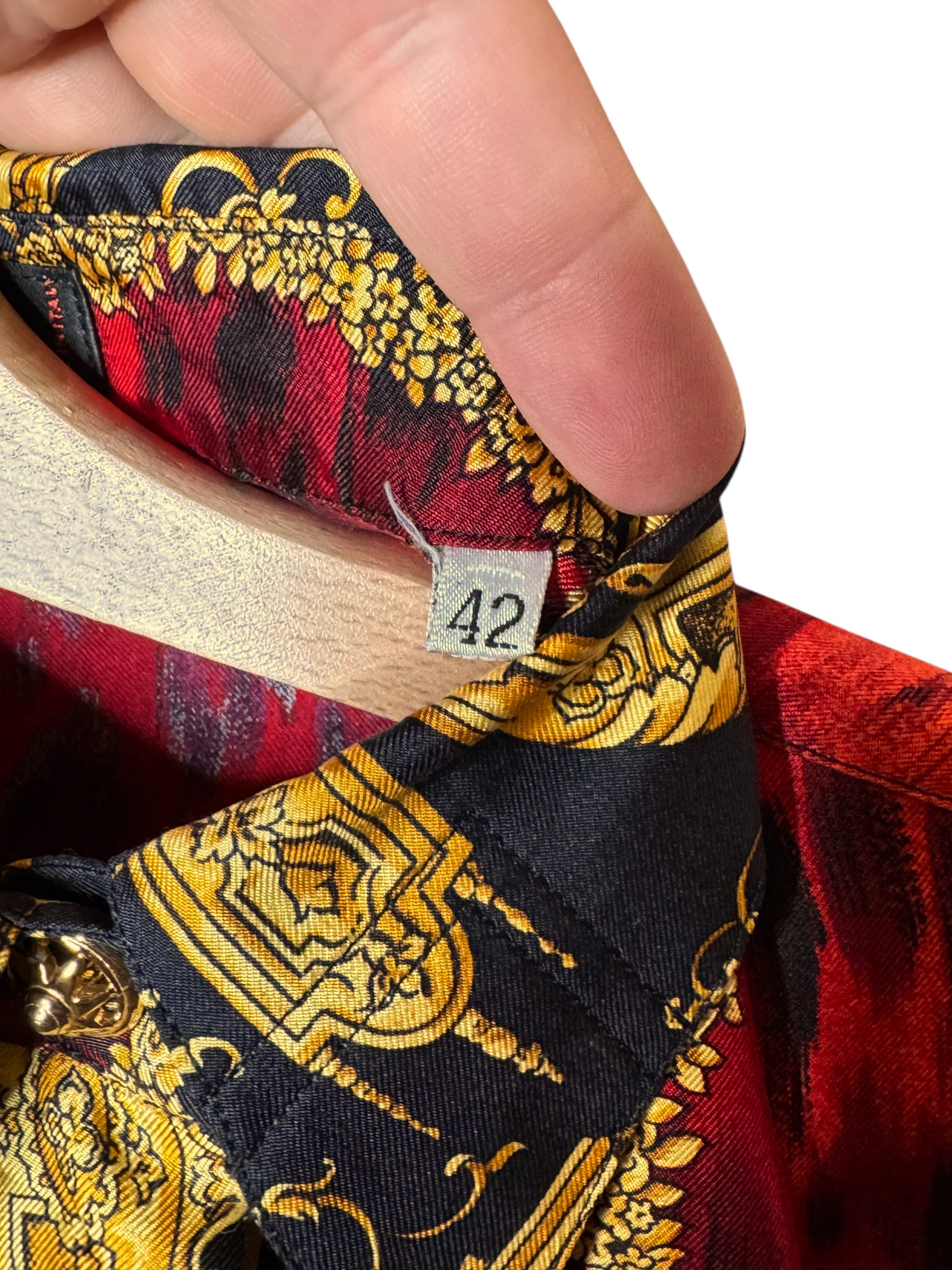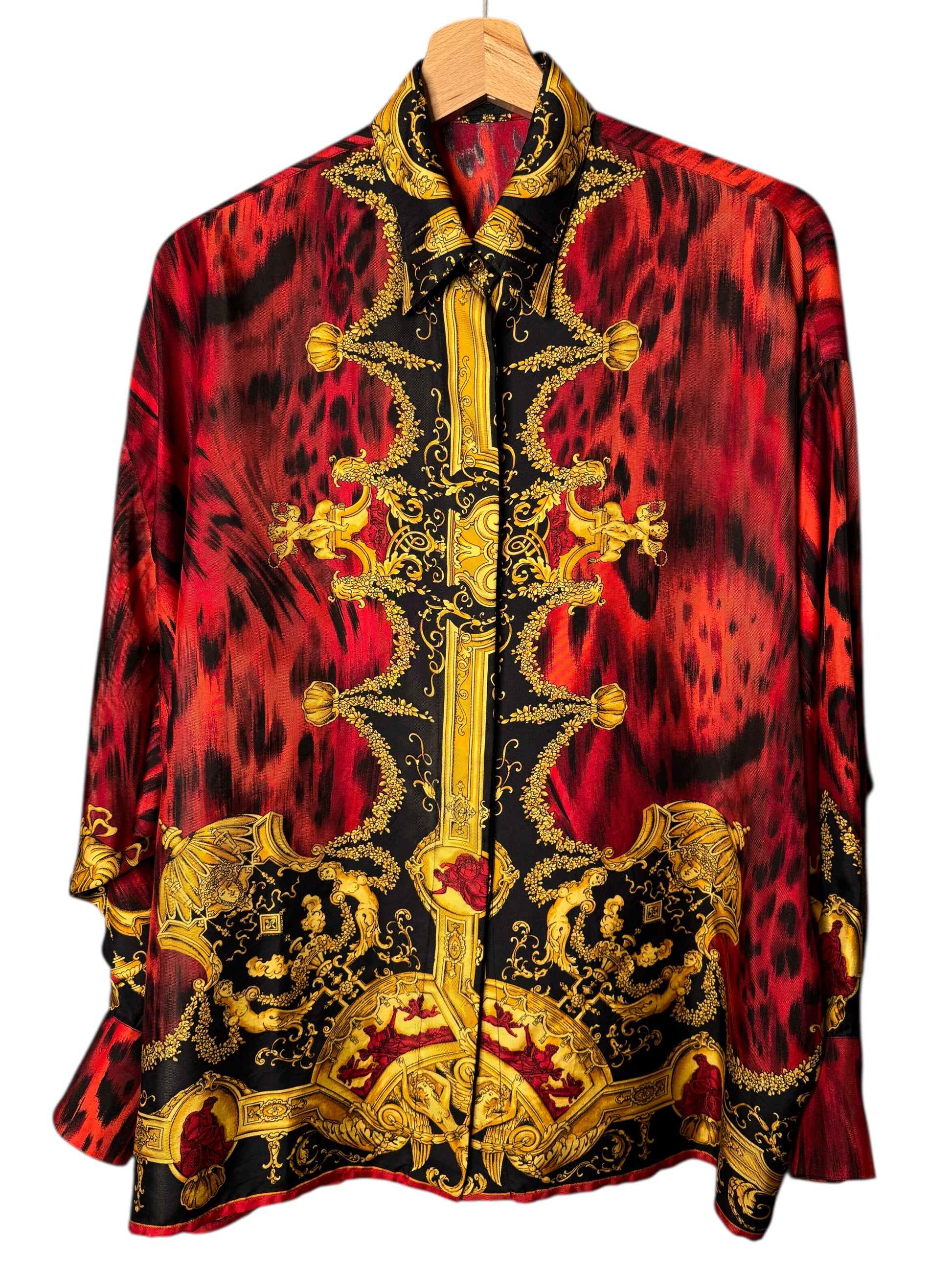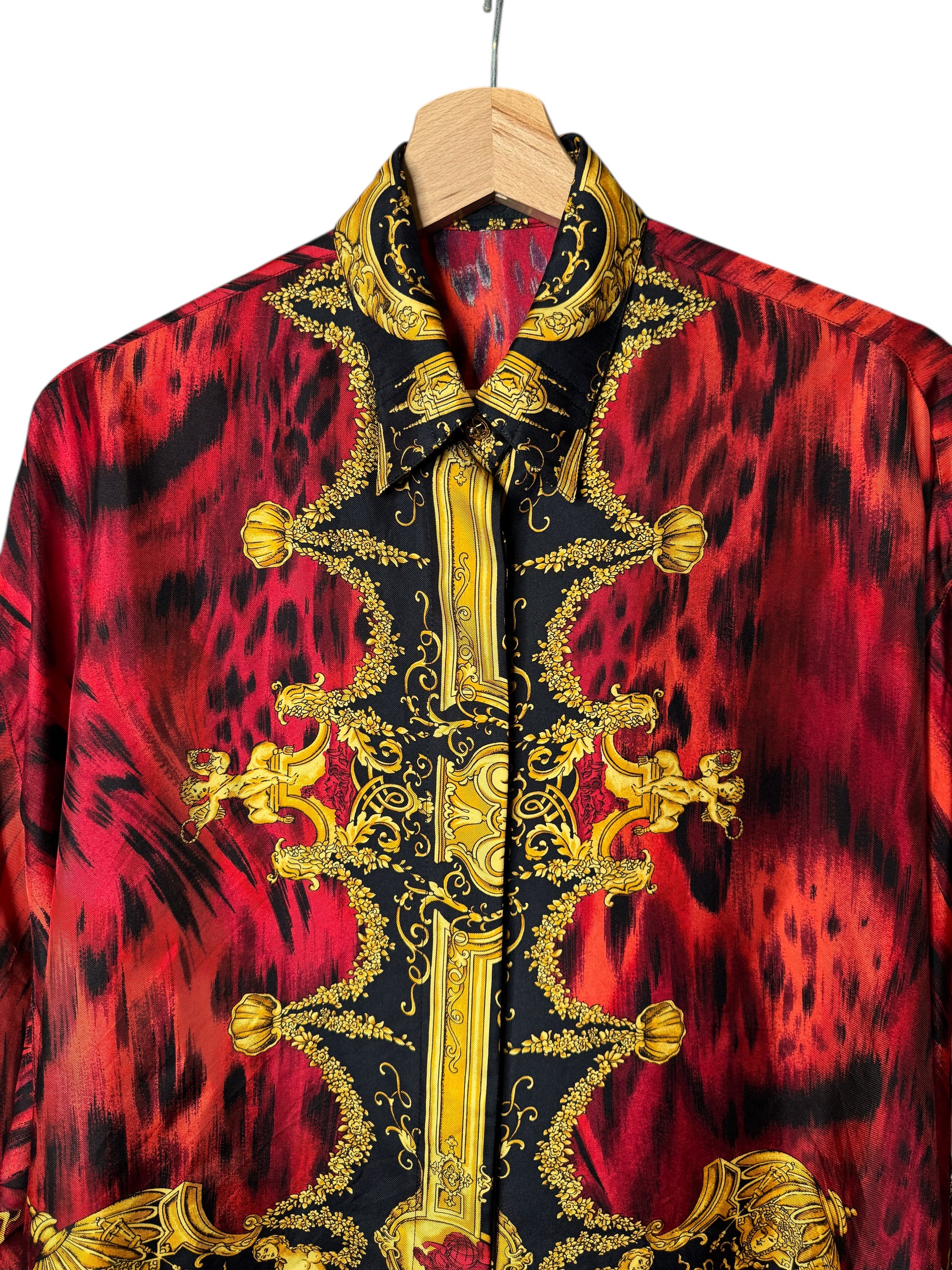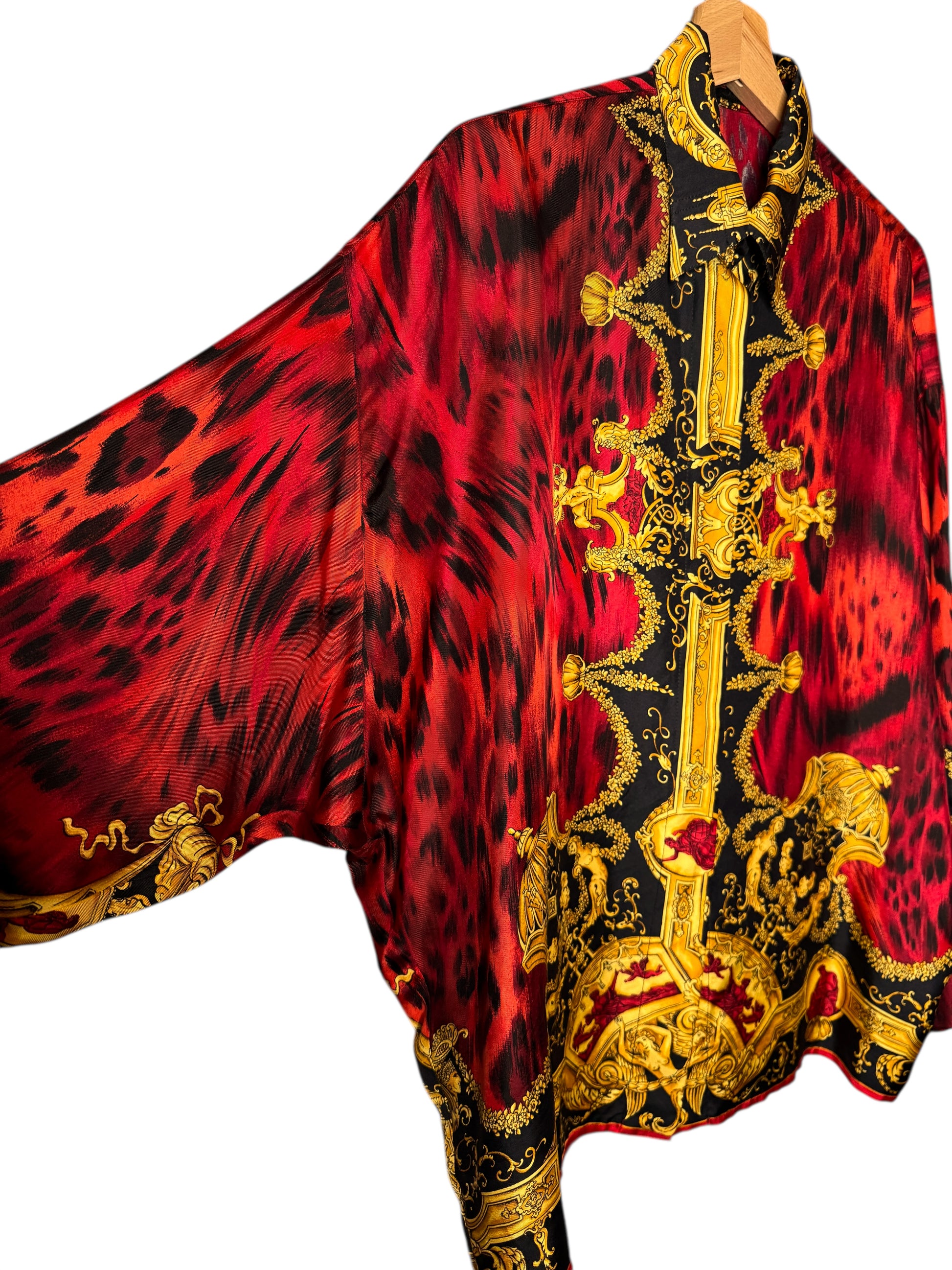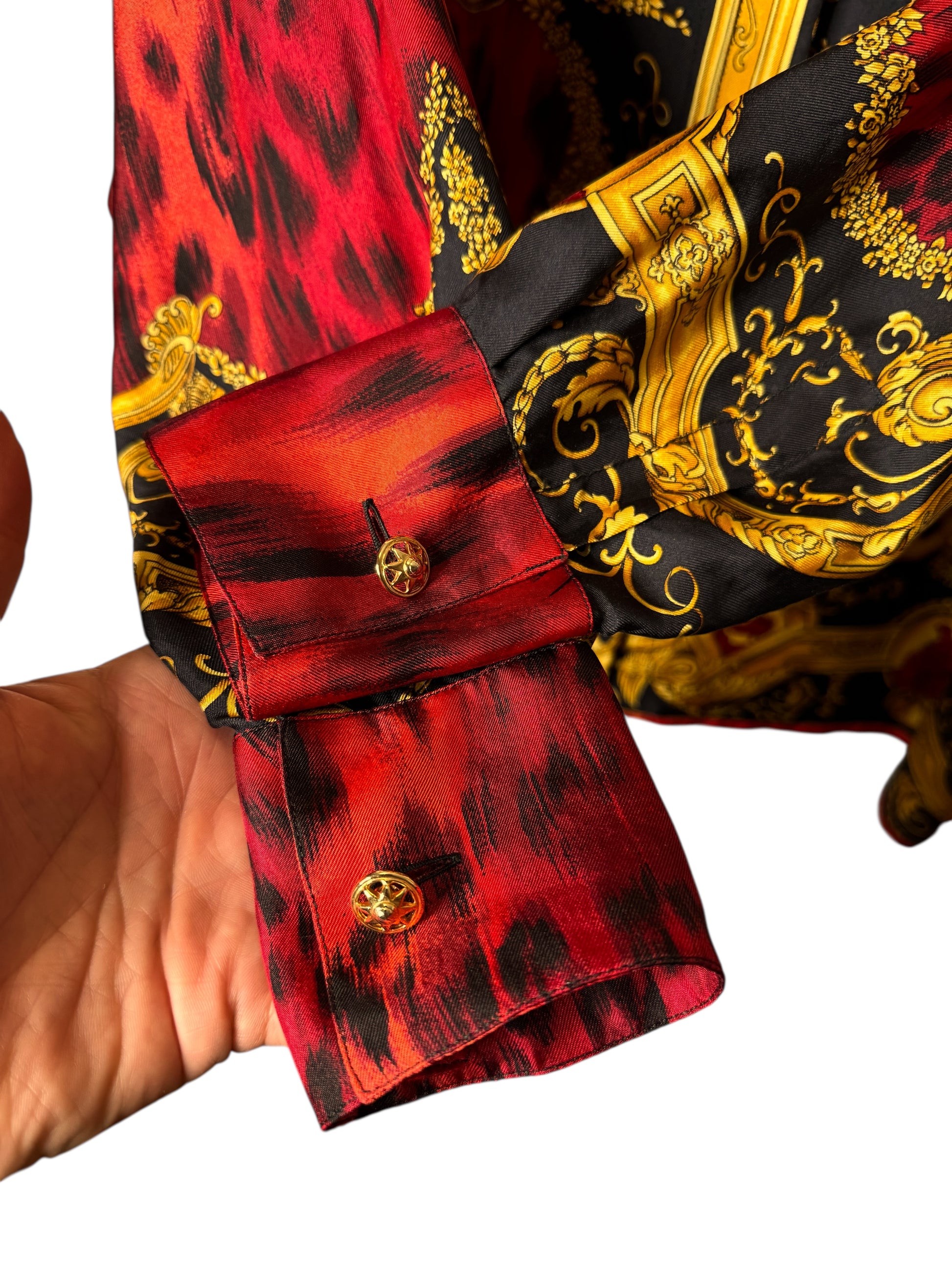 Camicia vintage Gianni Versace – Linea Istante – Taglia 42 – Stampa barocca oro e animalier rossa