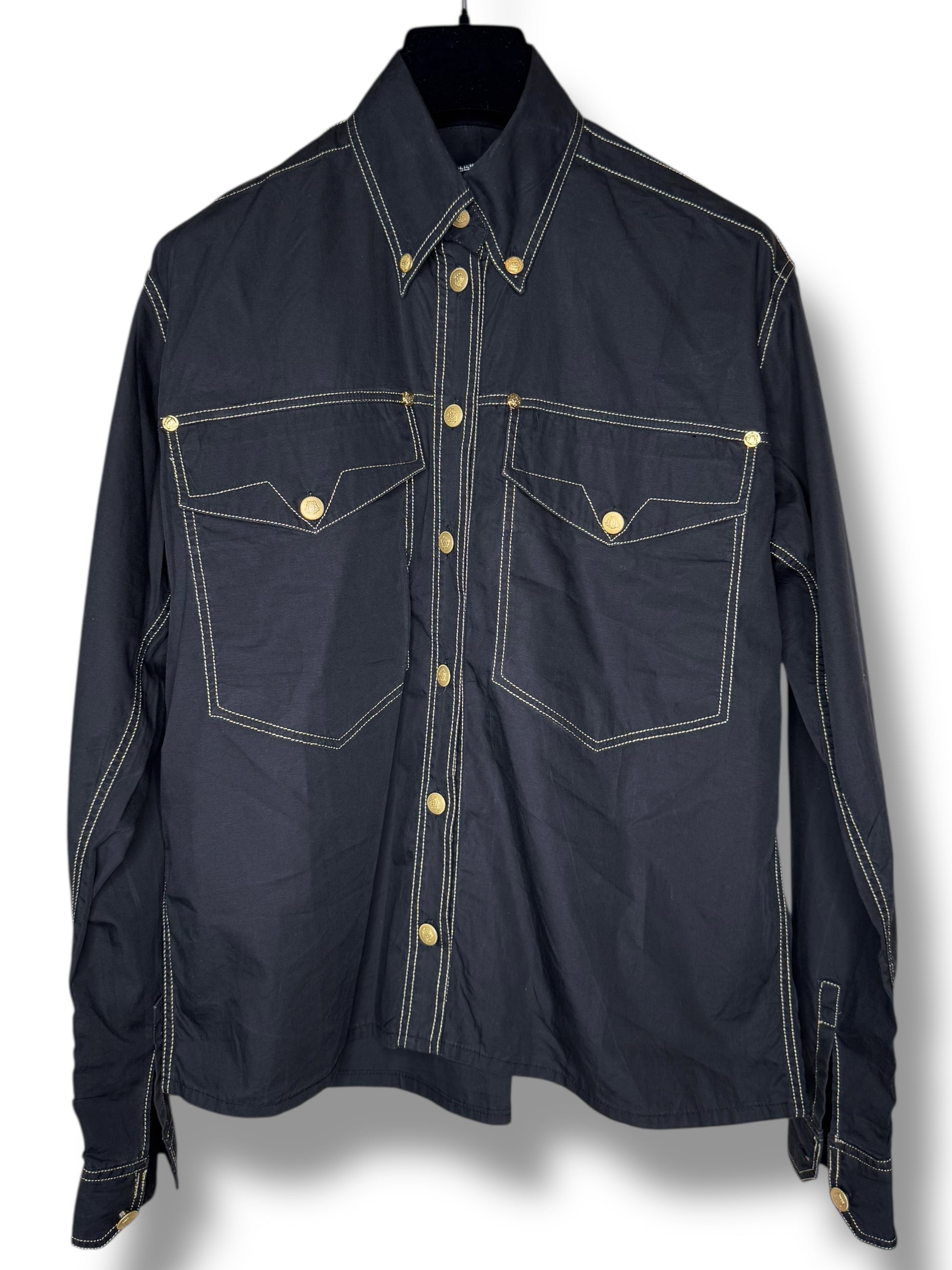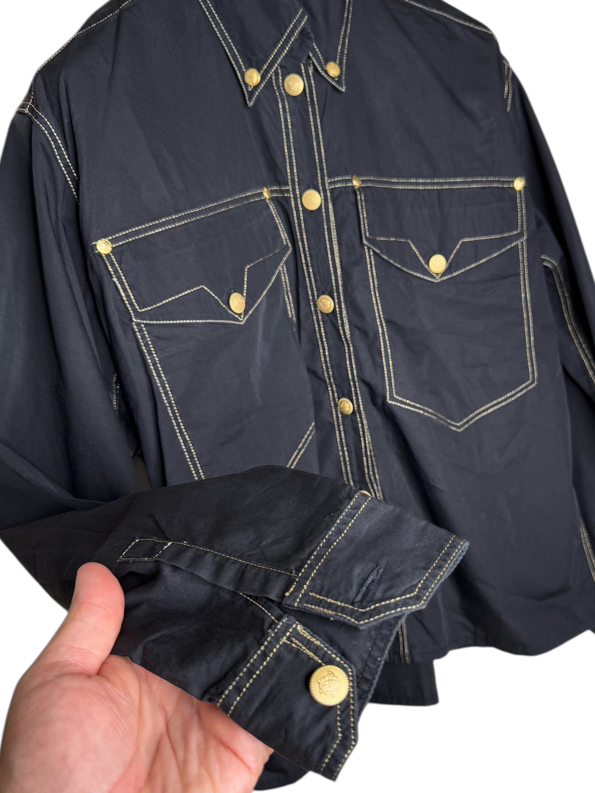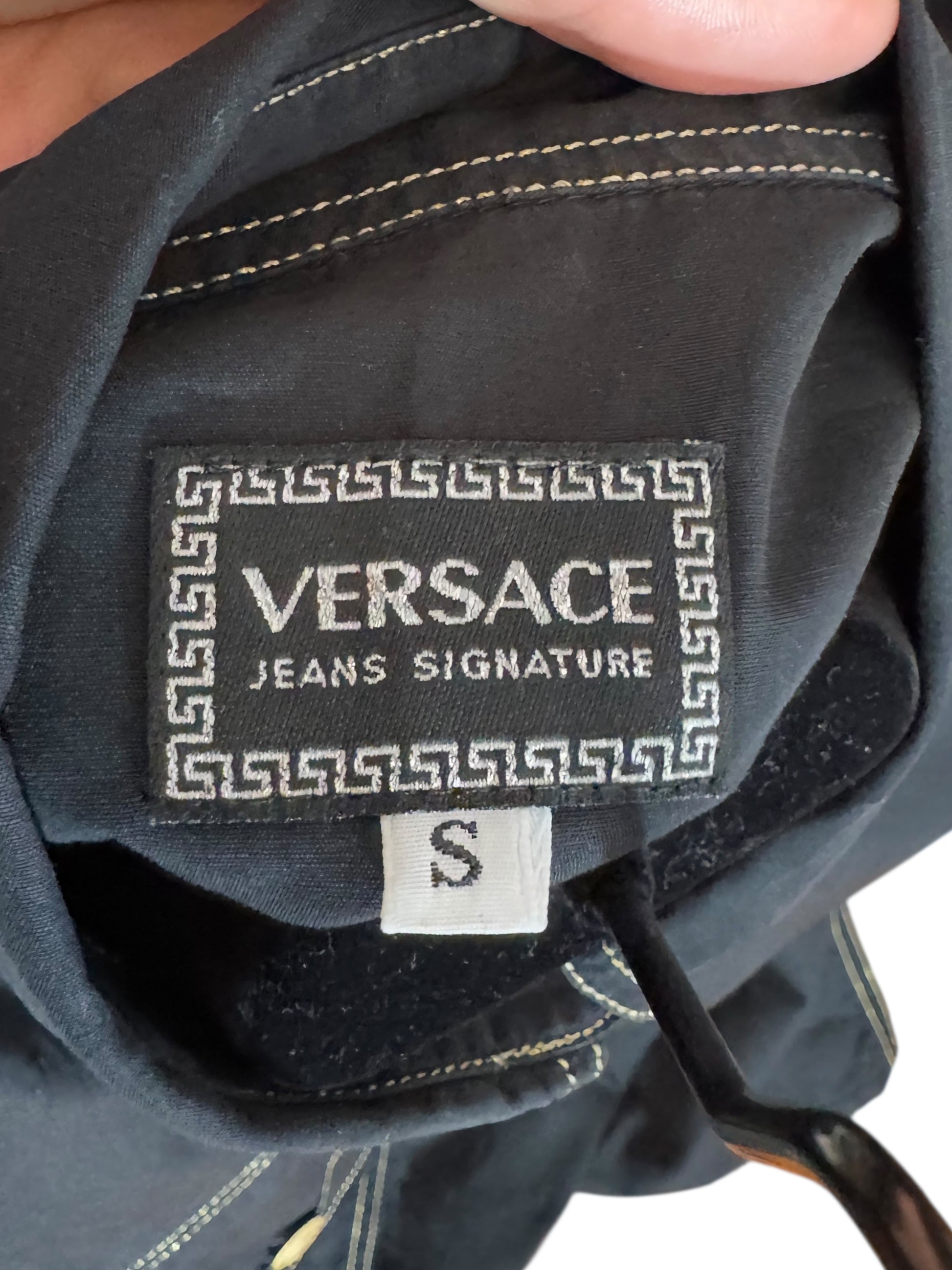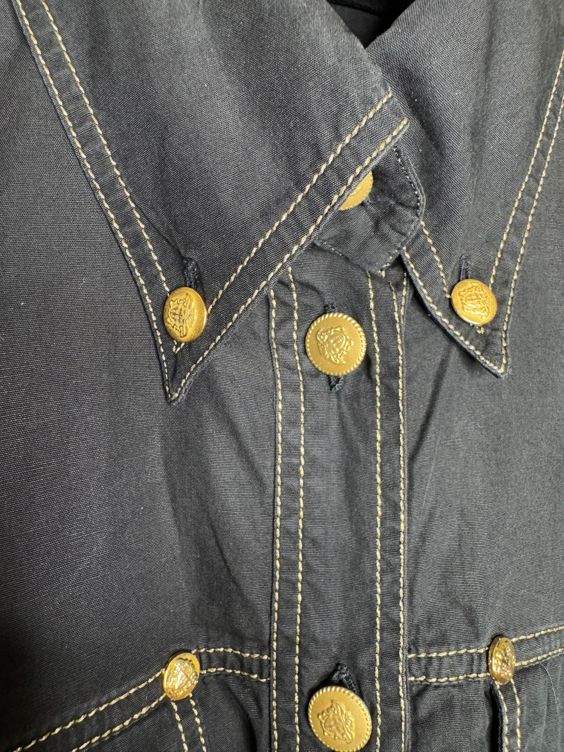 Camicia Vintage Versace Jeans Signature Nera – Bottoni Oro Medusa – Made in Italy – Taglia S