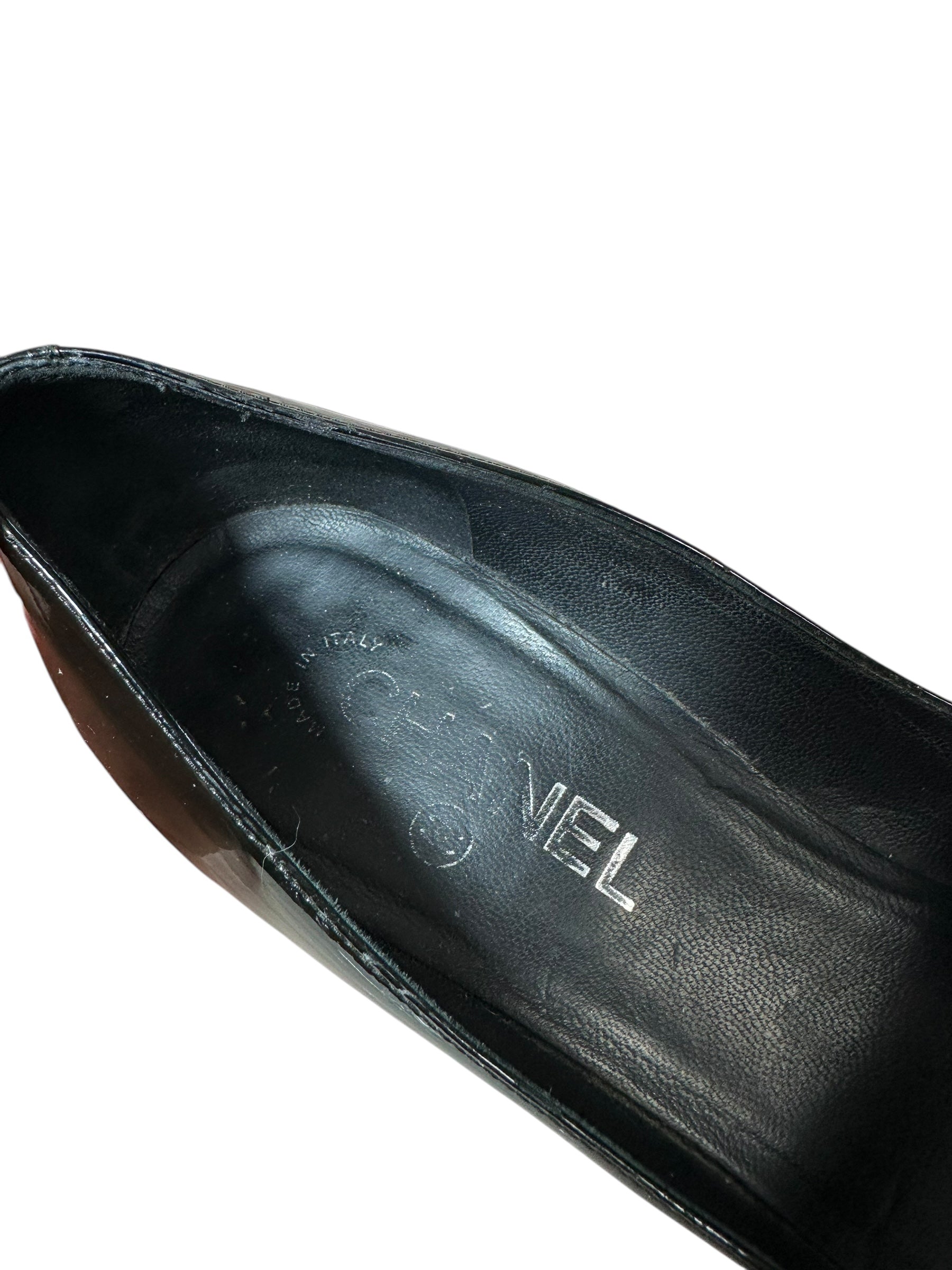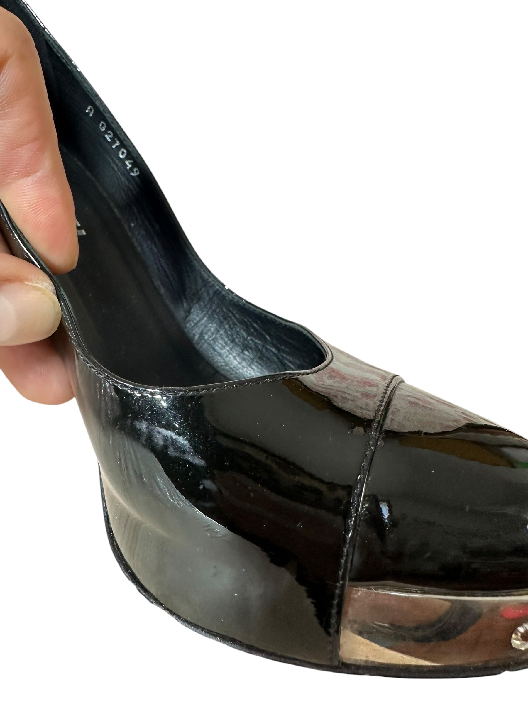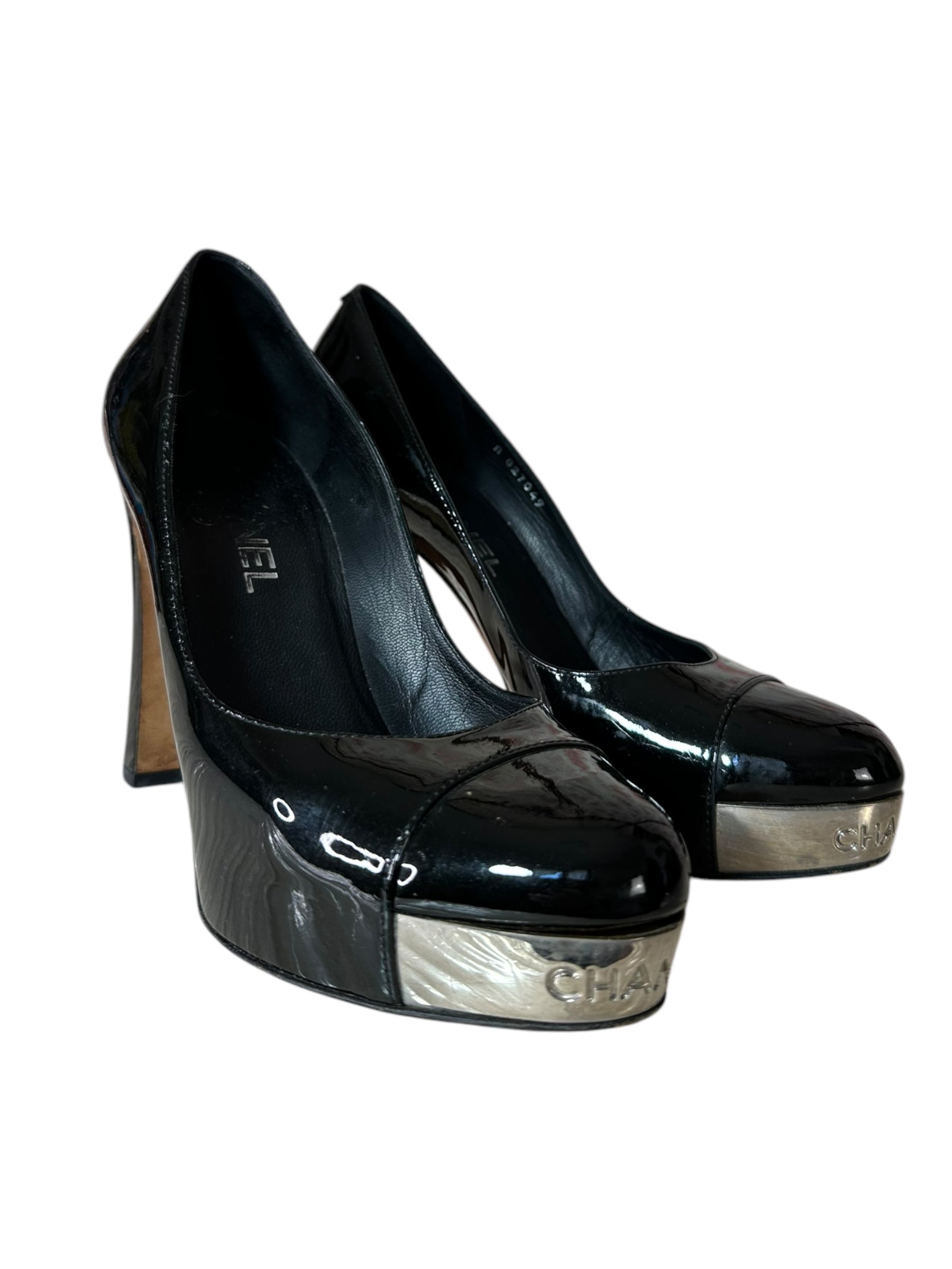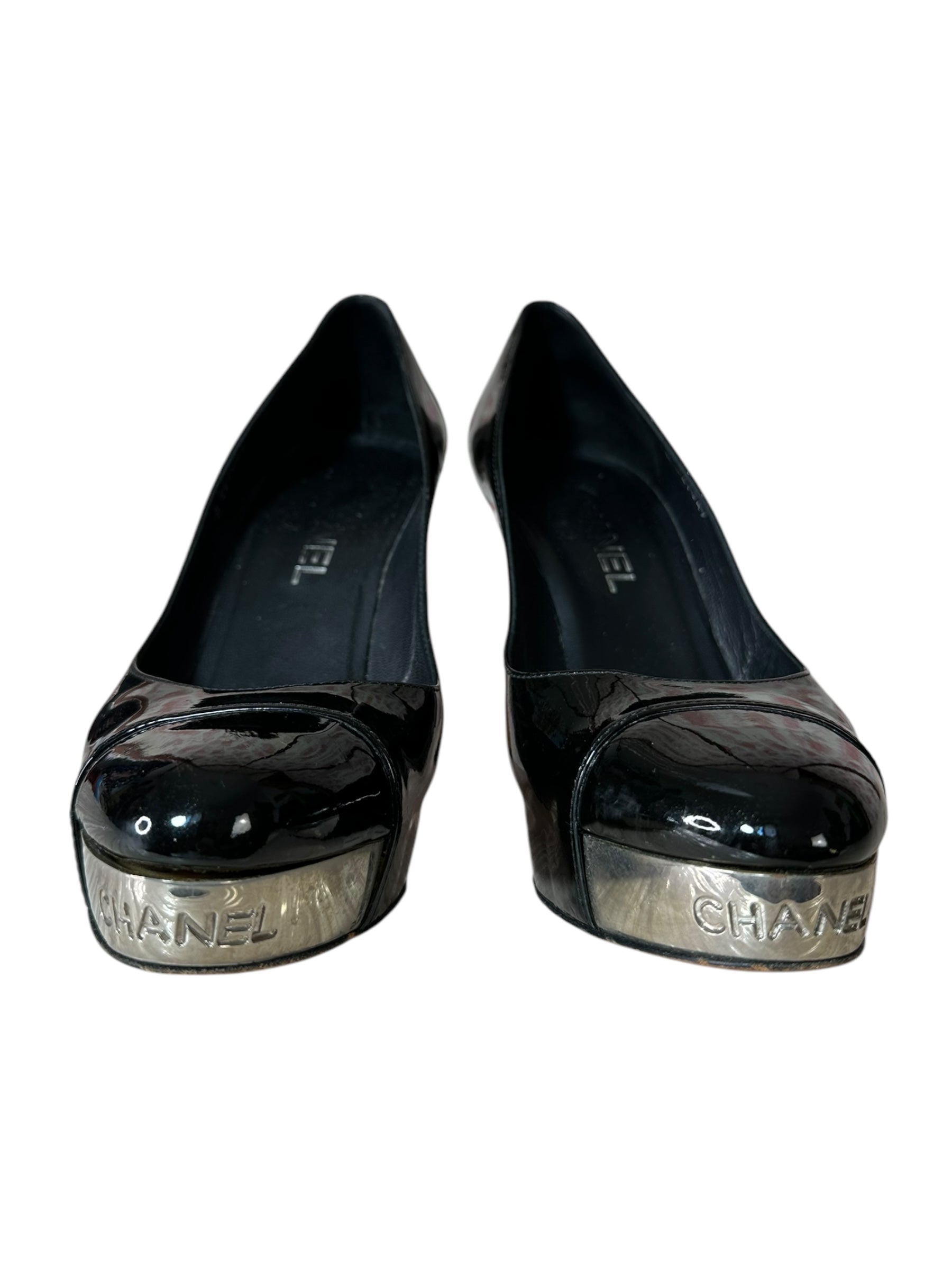 CHANEL - Décolleté in Vernice Nera con Platform in Metallo