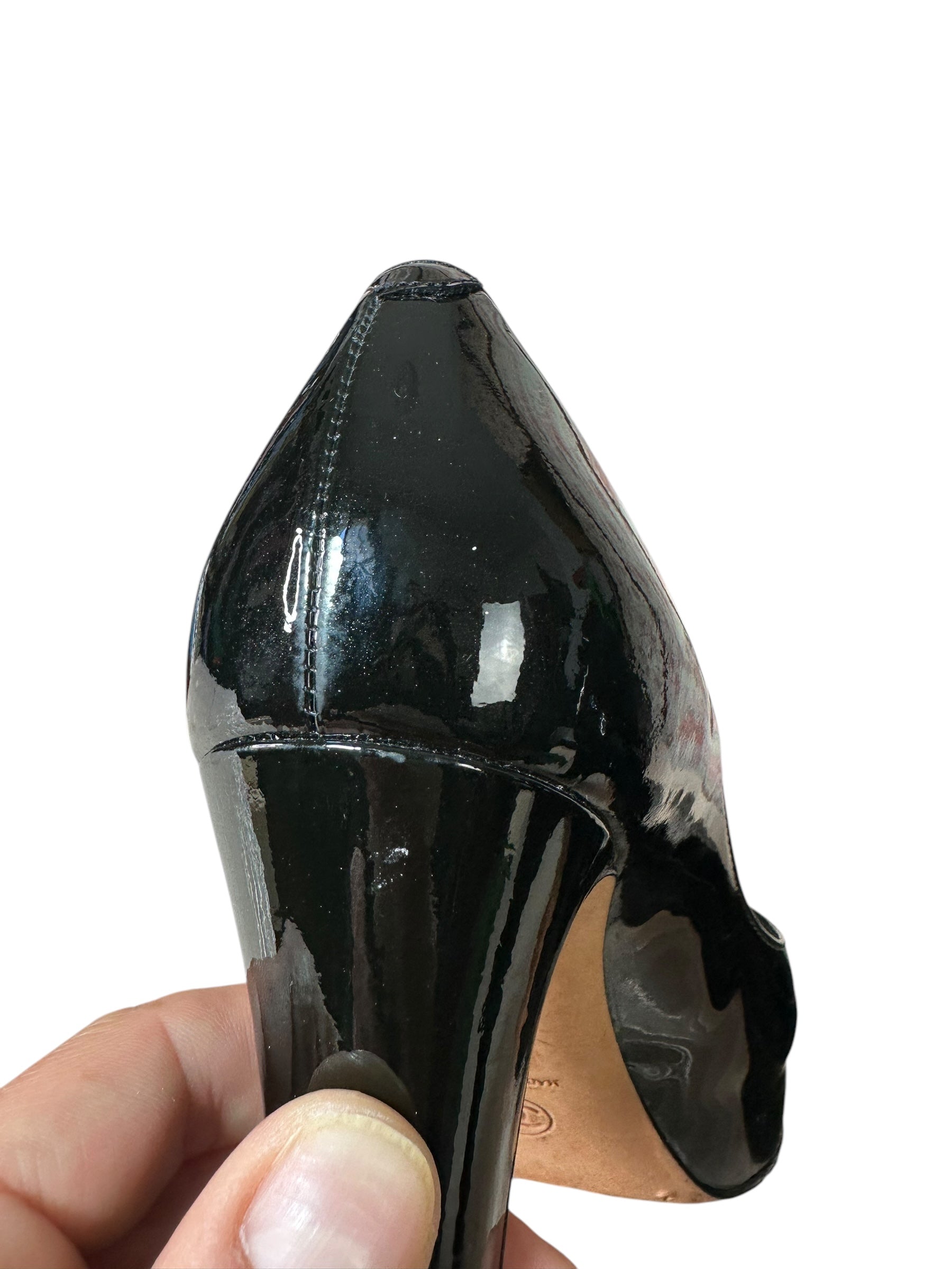 • Tacco: Tacco grosso rivestito in vernice nera, alto circa 12 cm; plateau anteriore di circa 2 cm che migliora il comfort.