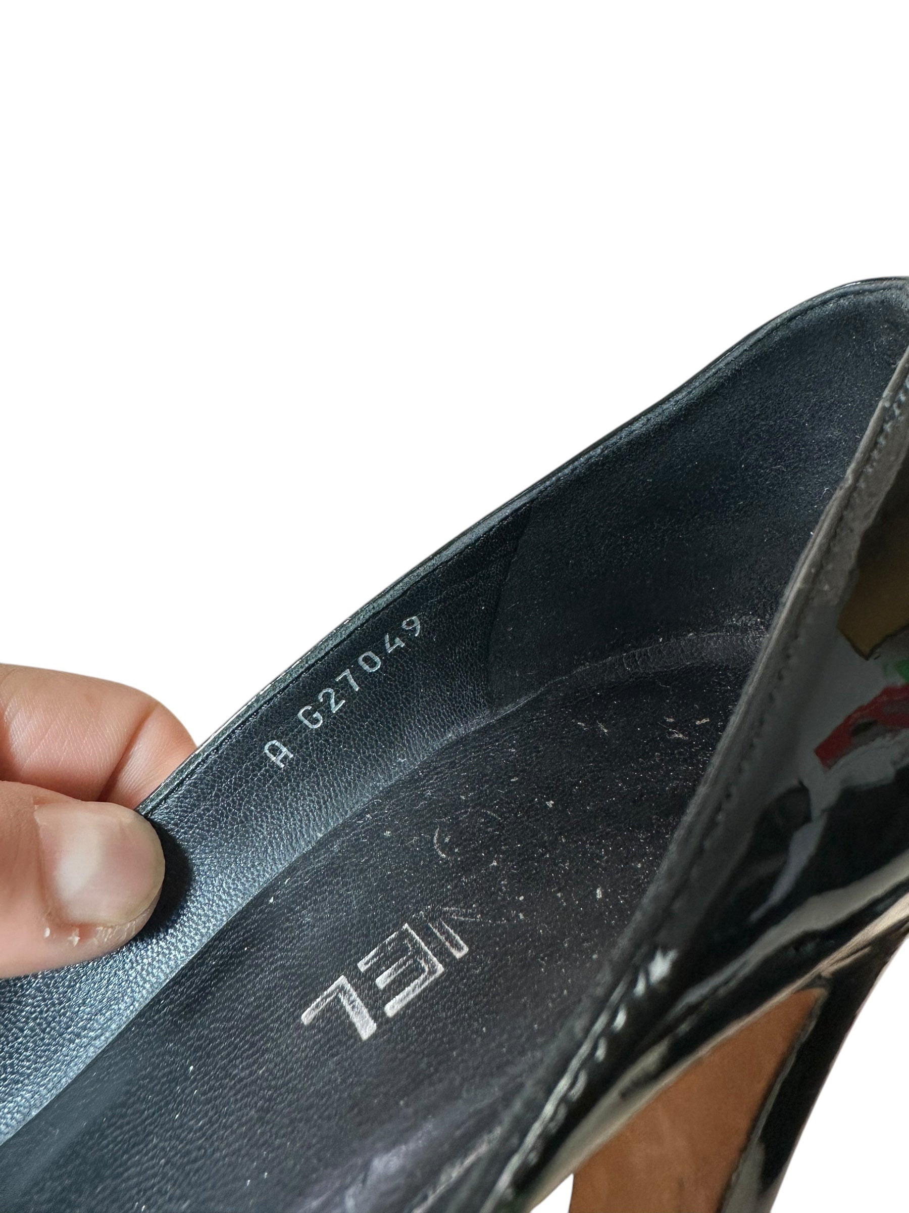 • Interno: Fodera e soletta in pelle nera con logo “CHANEL” impresso.