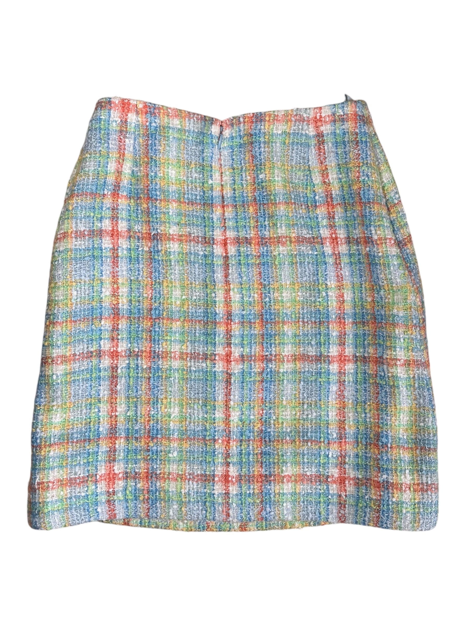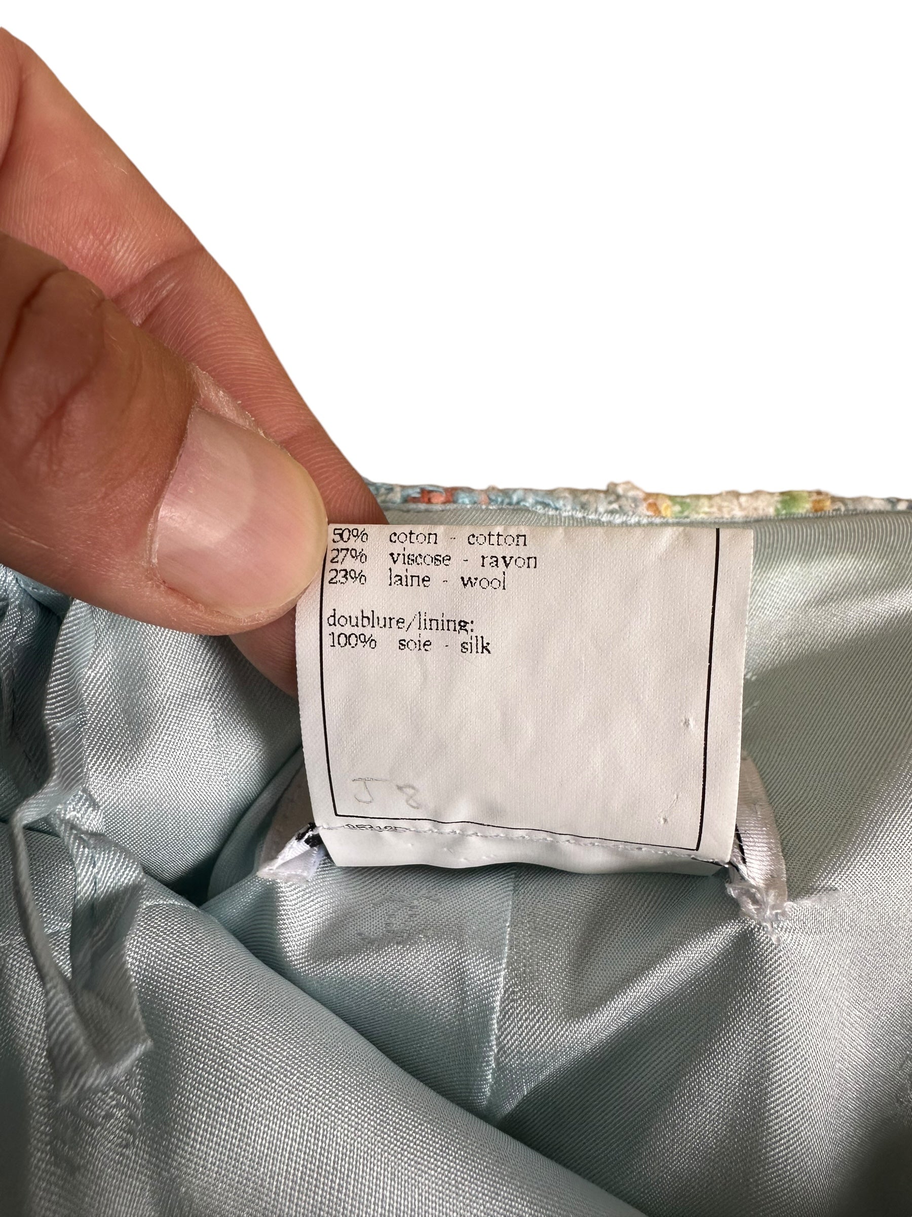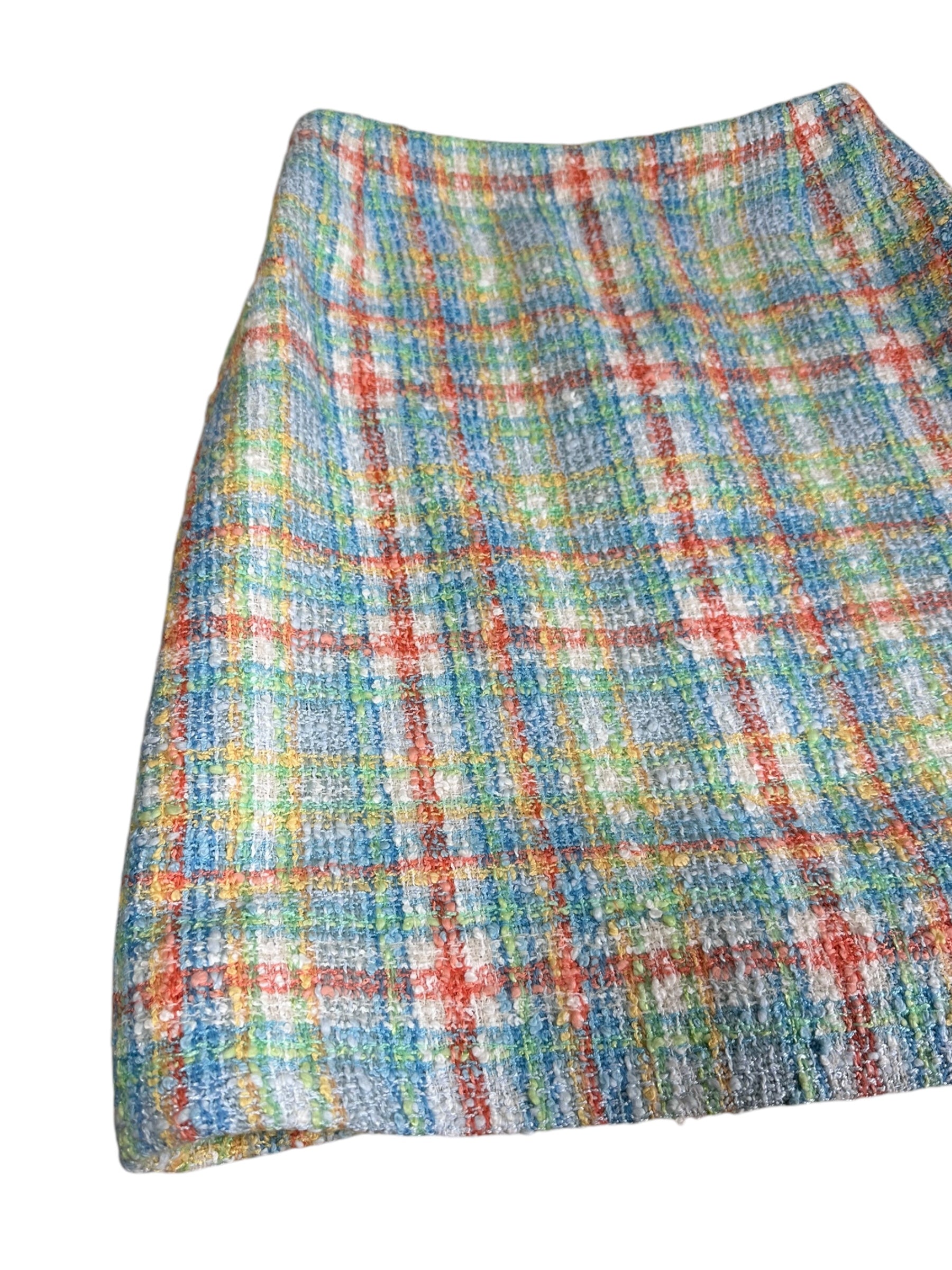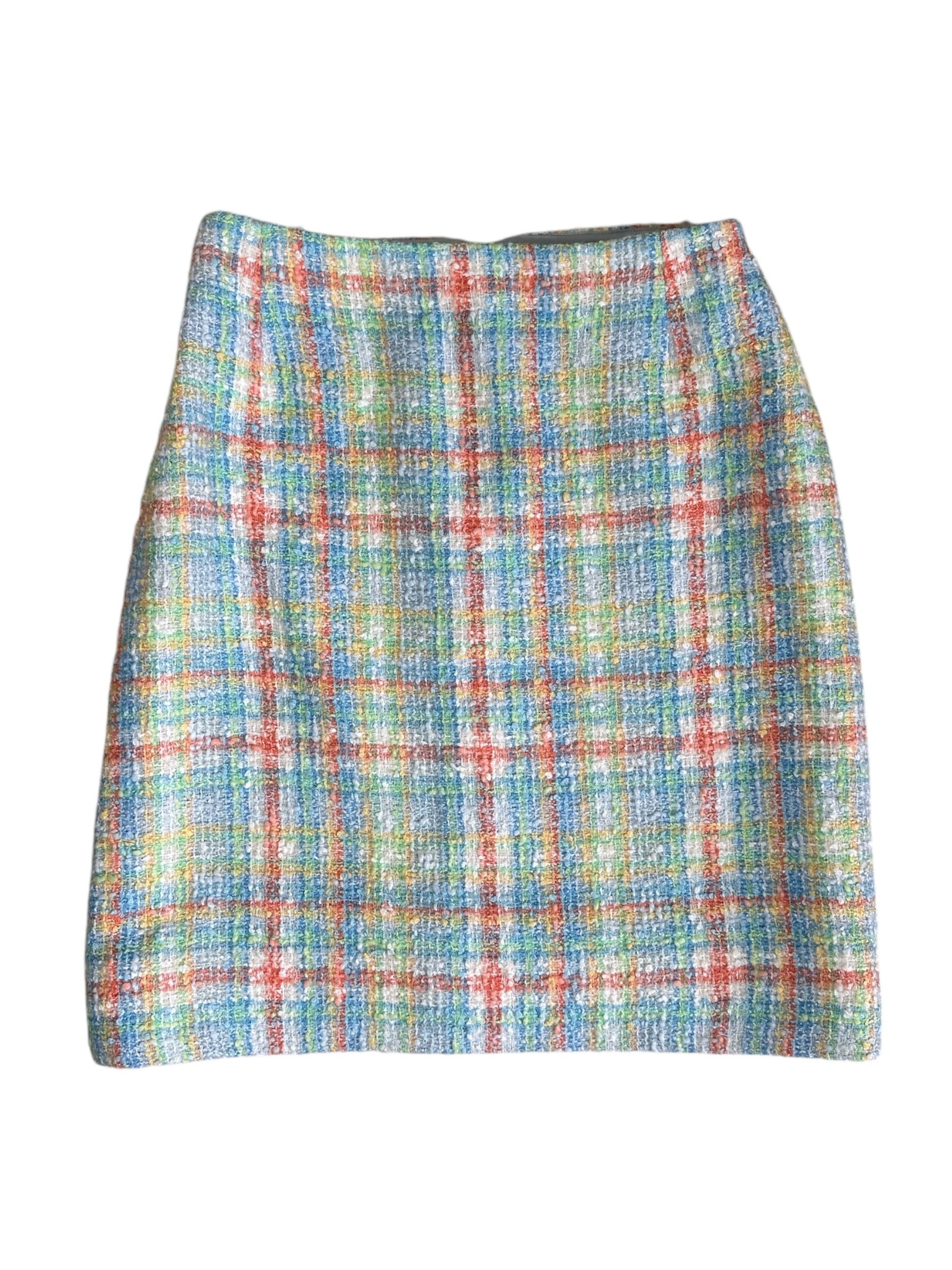 Chanel gonna vintage a vita alta in cotone, viscosa e lana bouclè multicolor con chiusura a zip sul retro e interno foderato in seta. Tg. 40 Francese