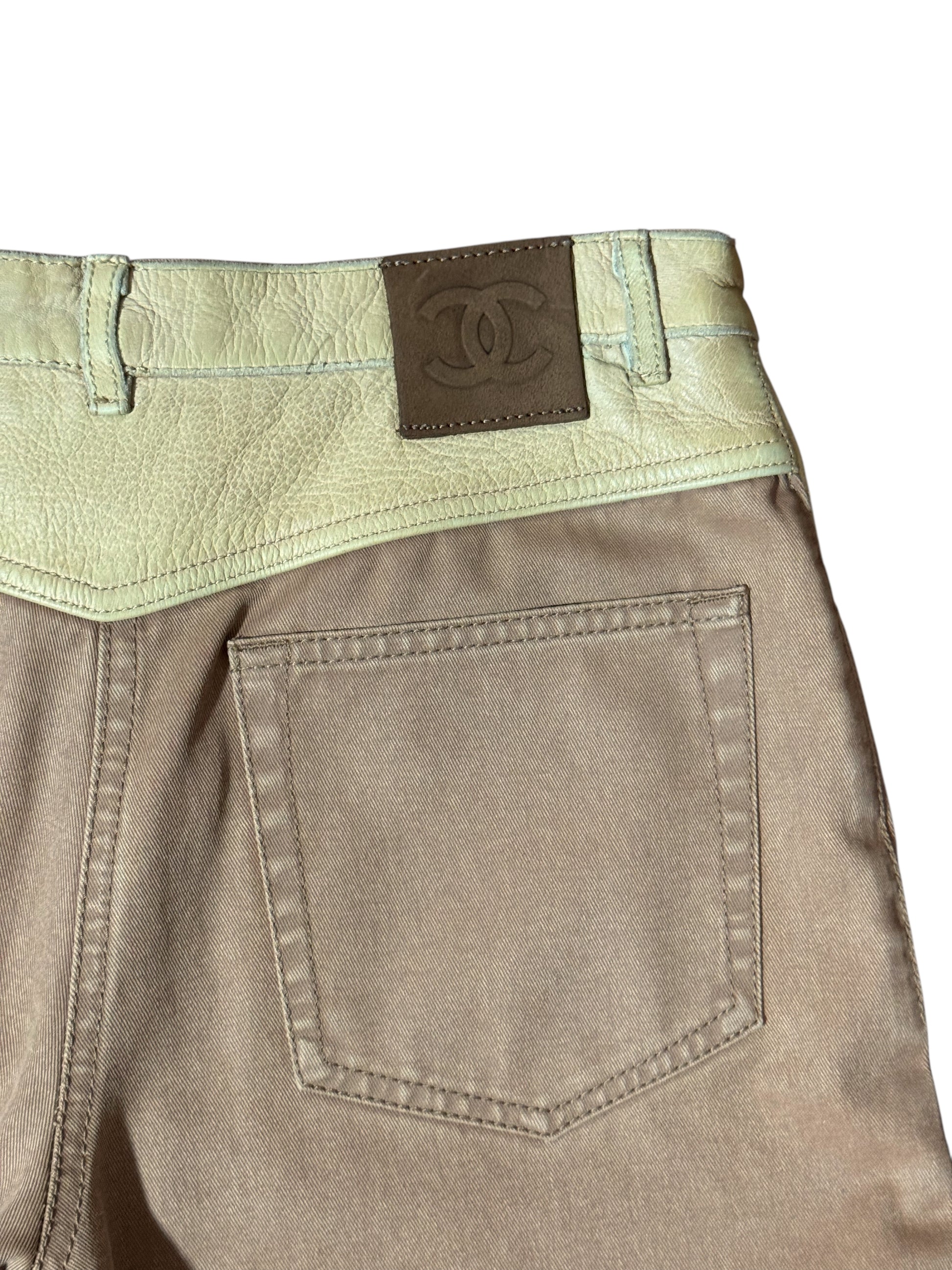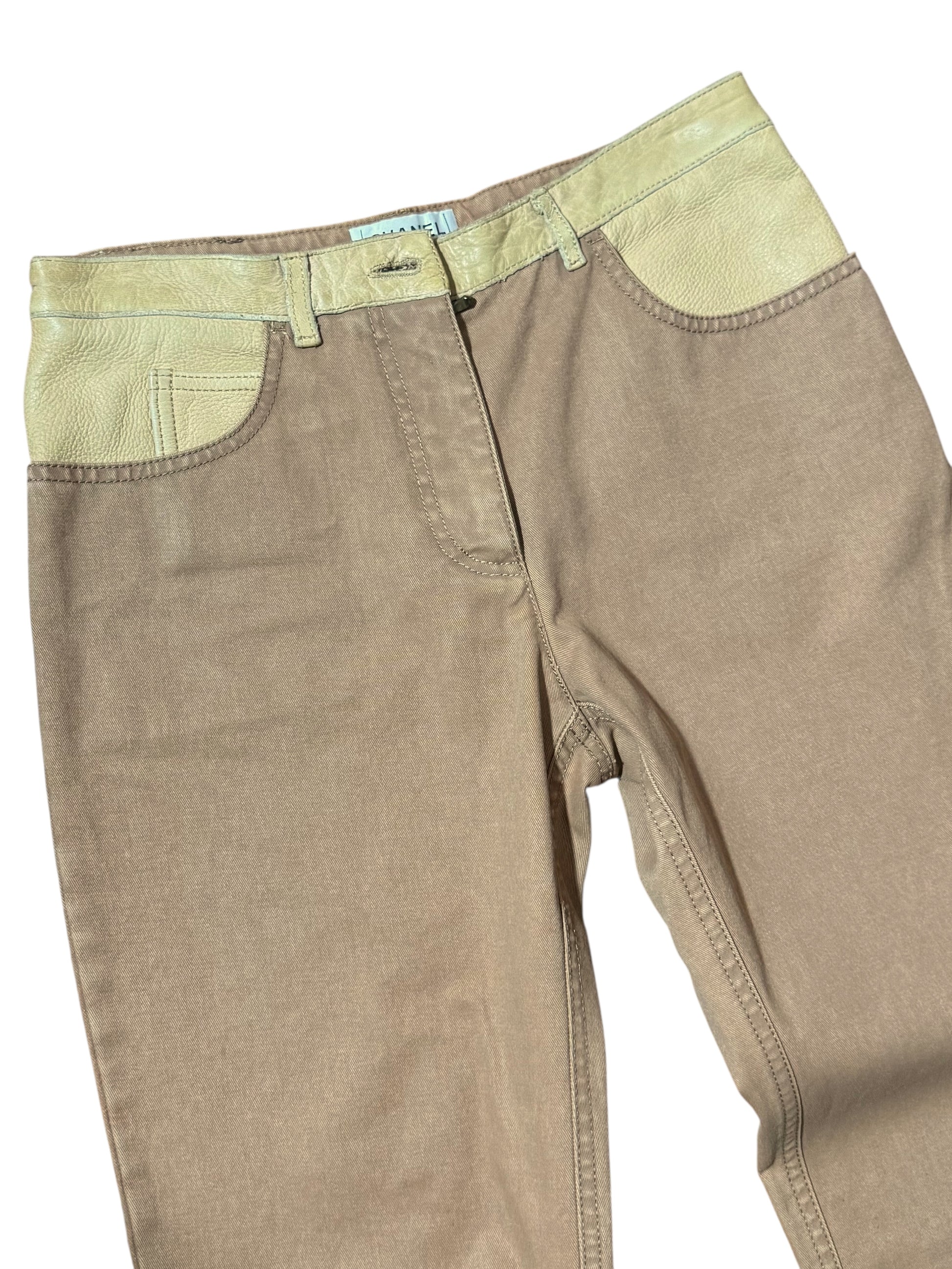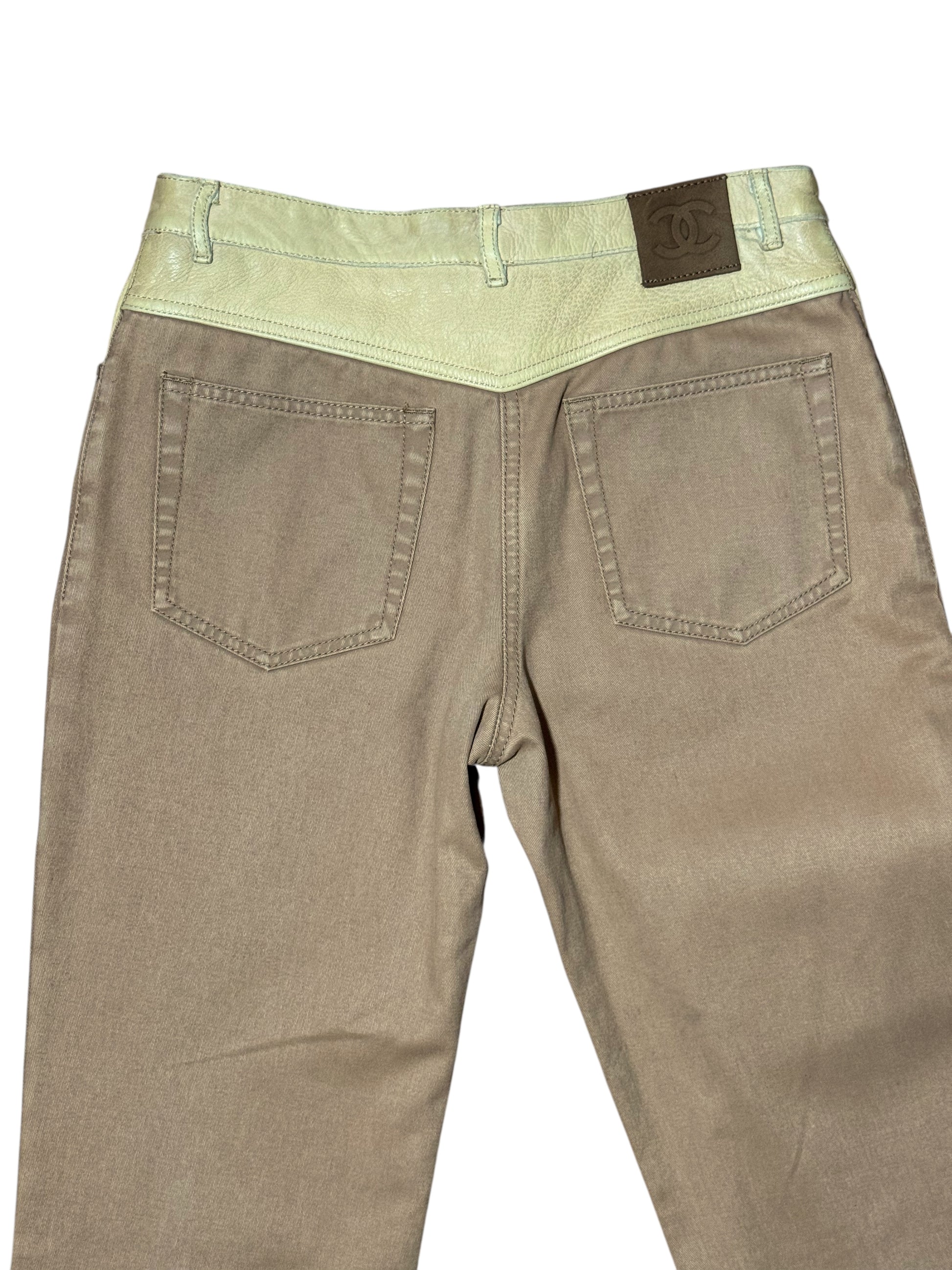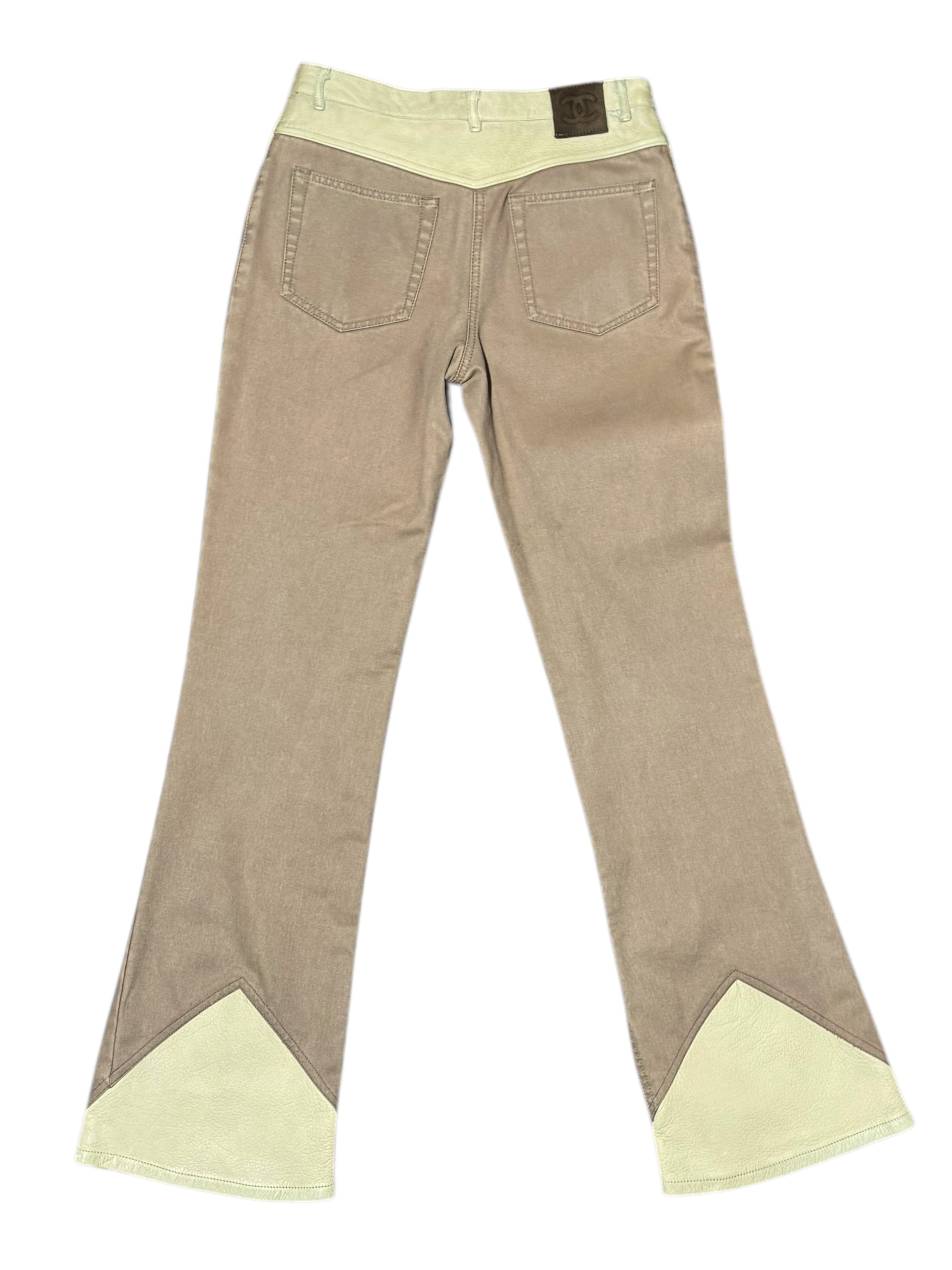 Chanel Pantaloni Donna Flare Cotone Beige con Inserti Ecopelle – FR 36 (IT 40)