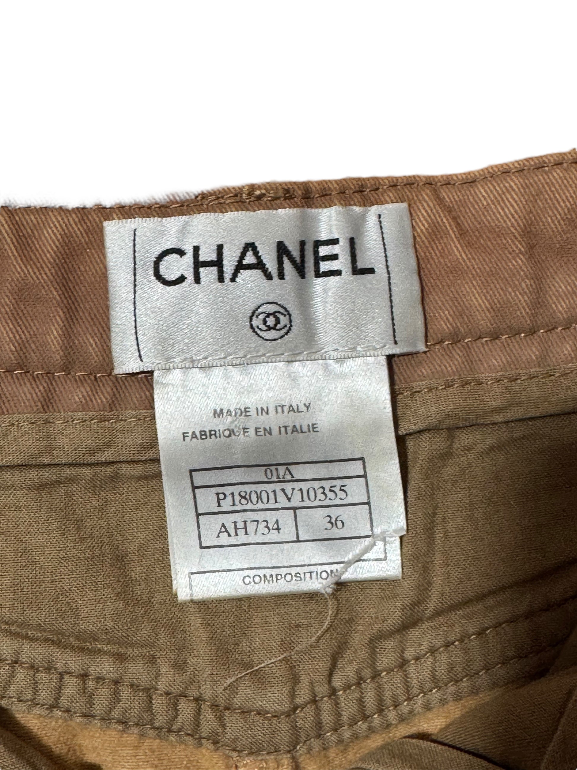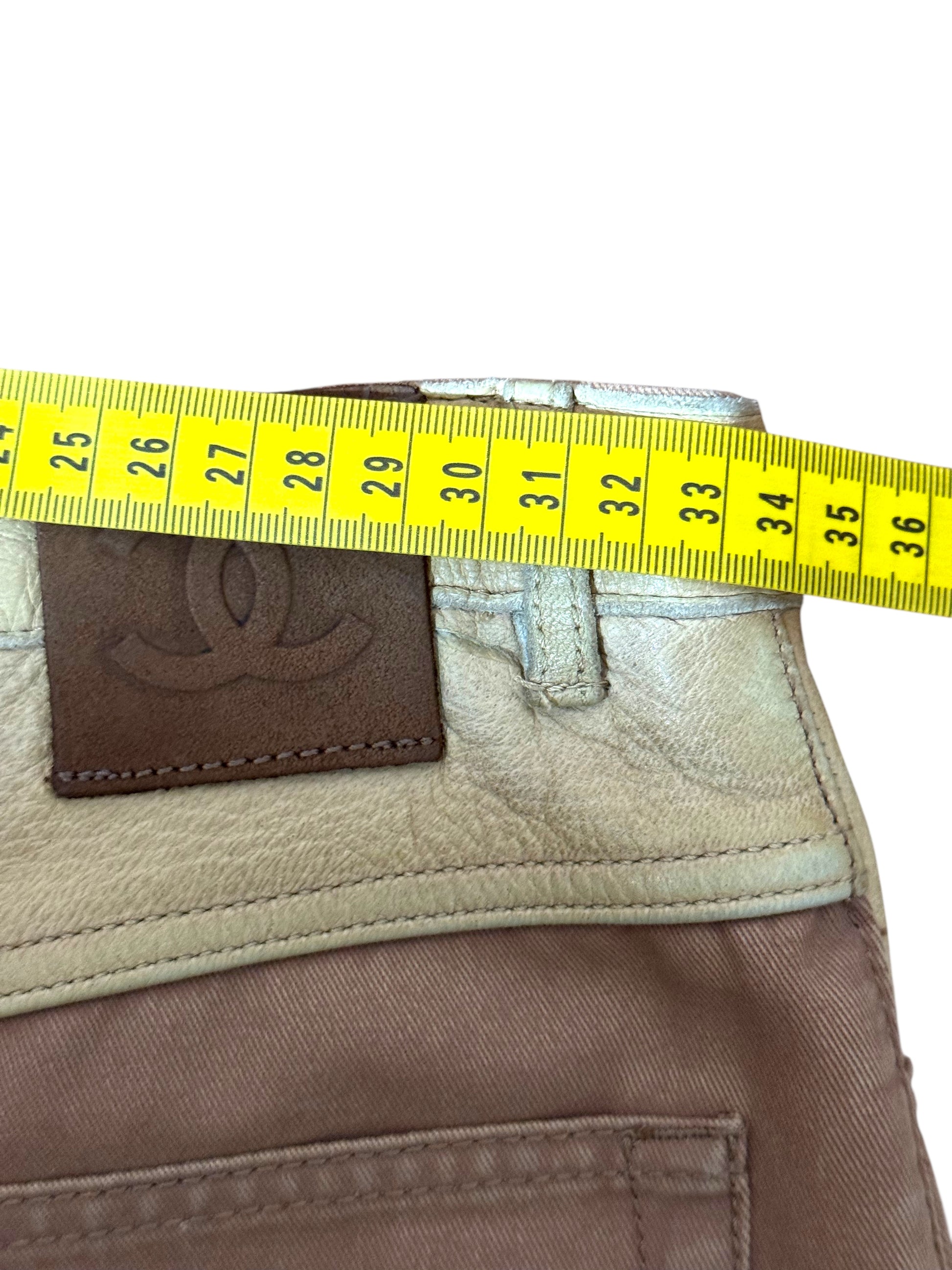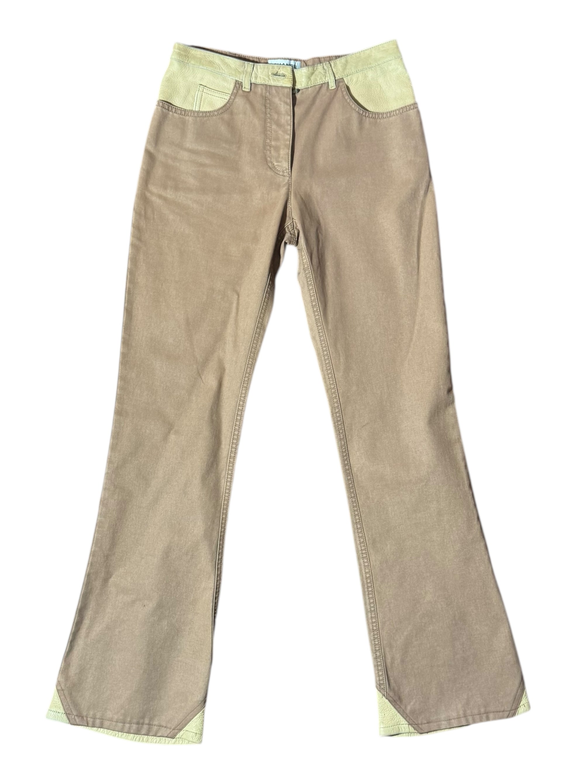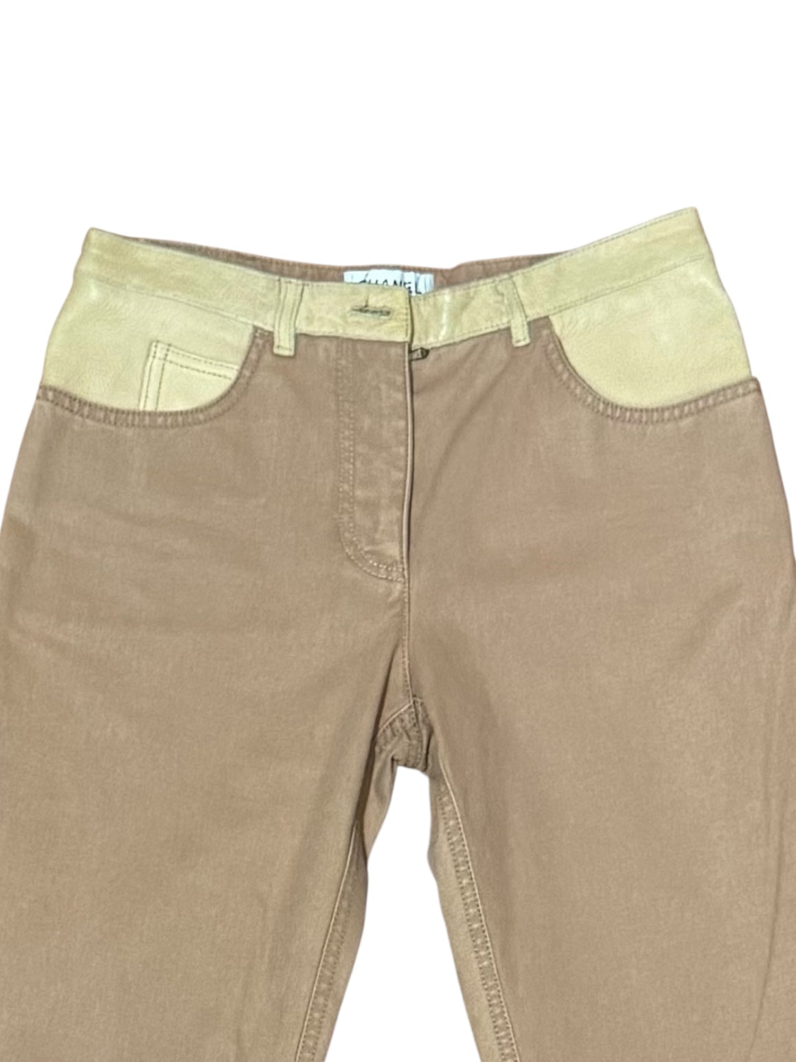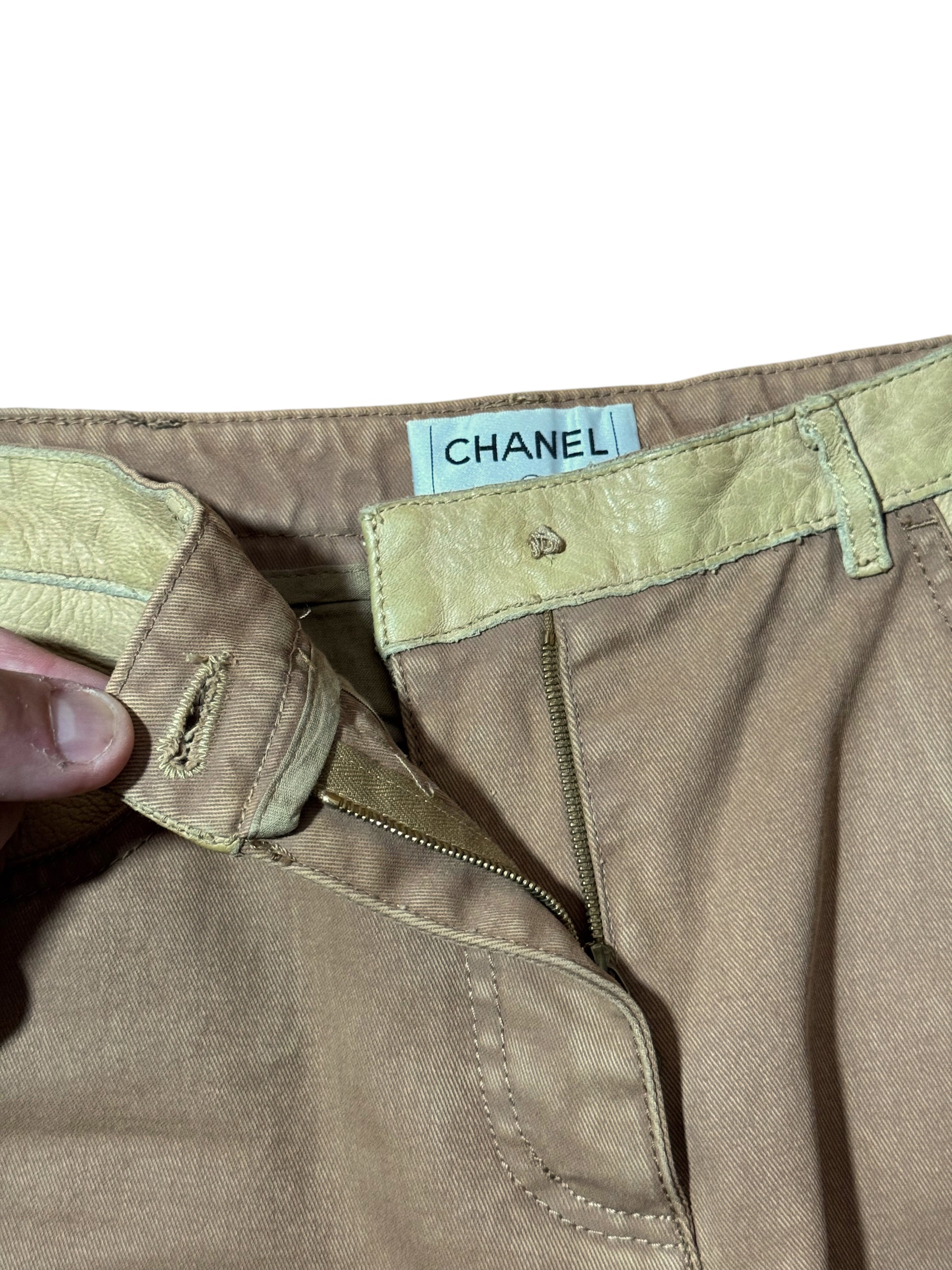 Chanel Pantaloni Donna Flare Cotone Beige con Inserti Ecopelle – FR 36 (IT 40)