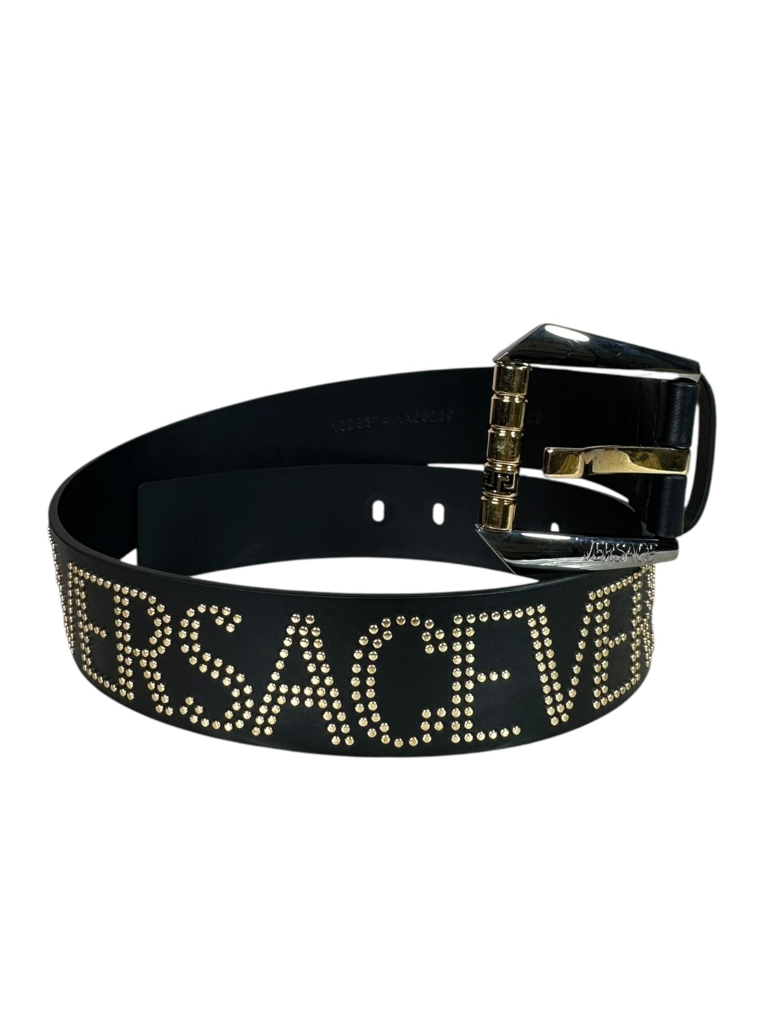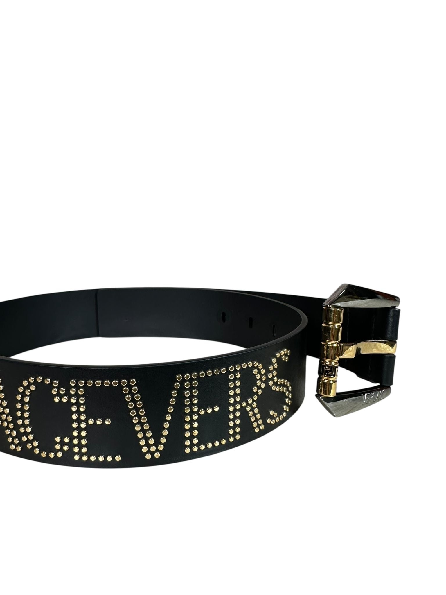 Cintura Versace in pelle con borchie dorate