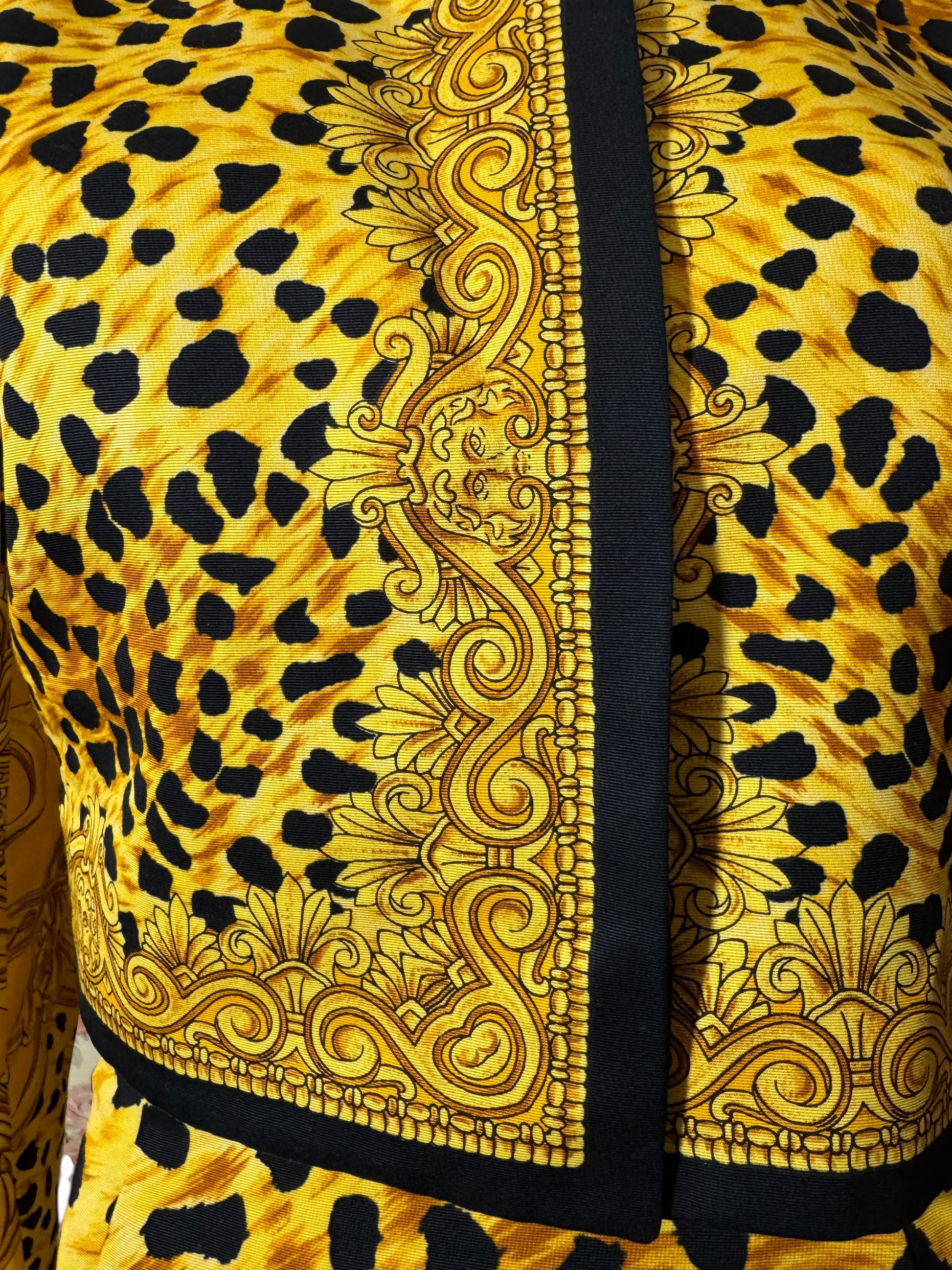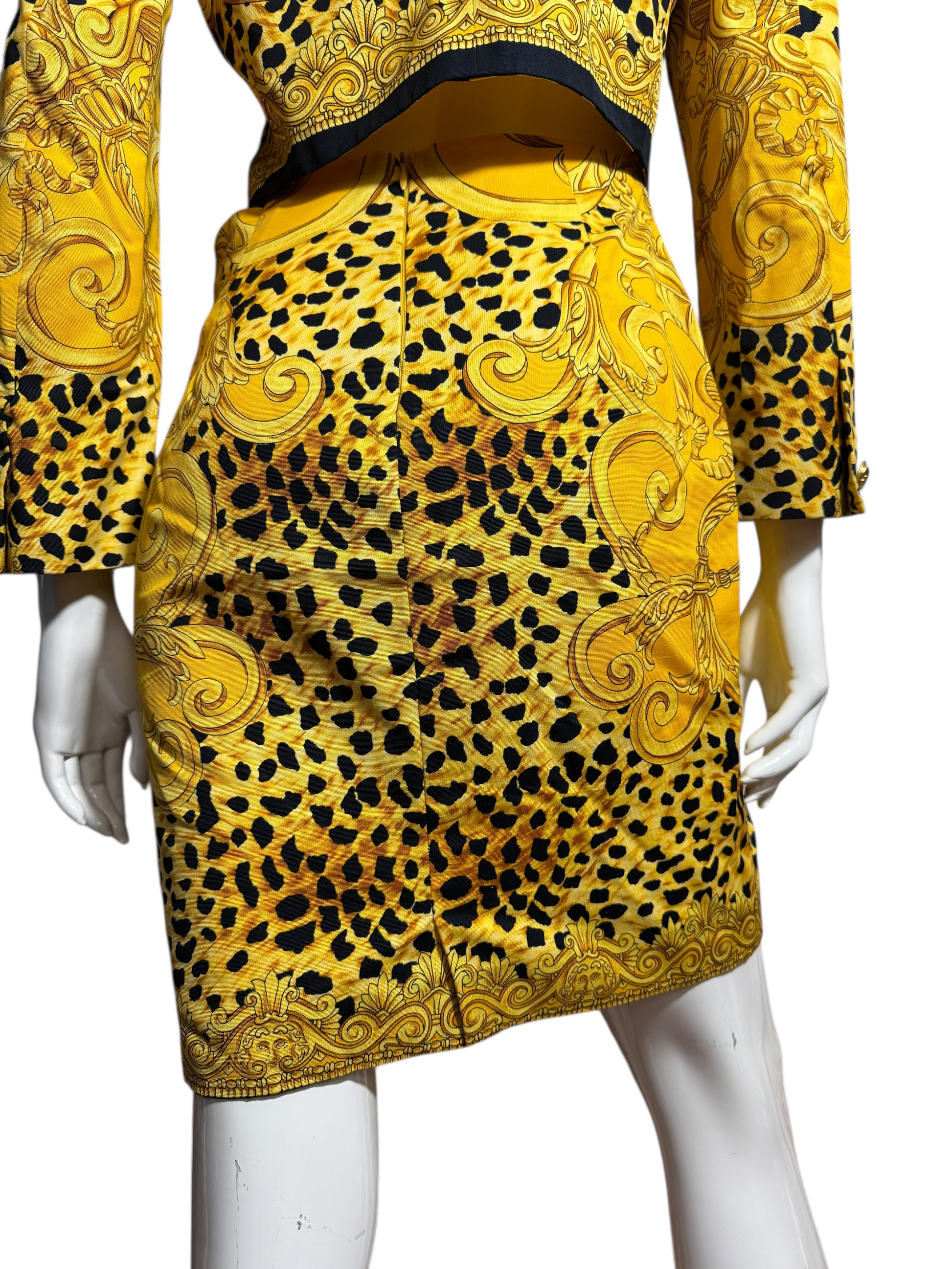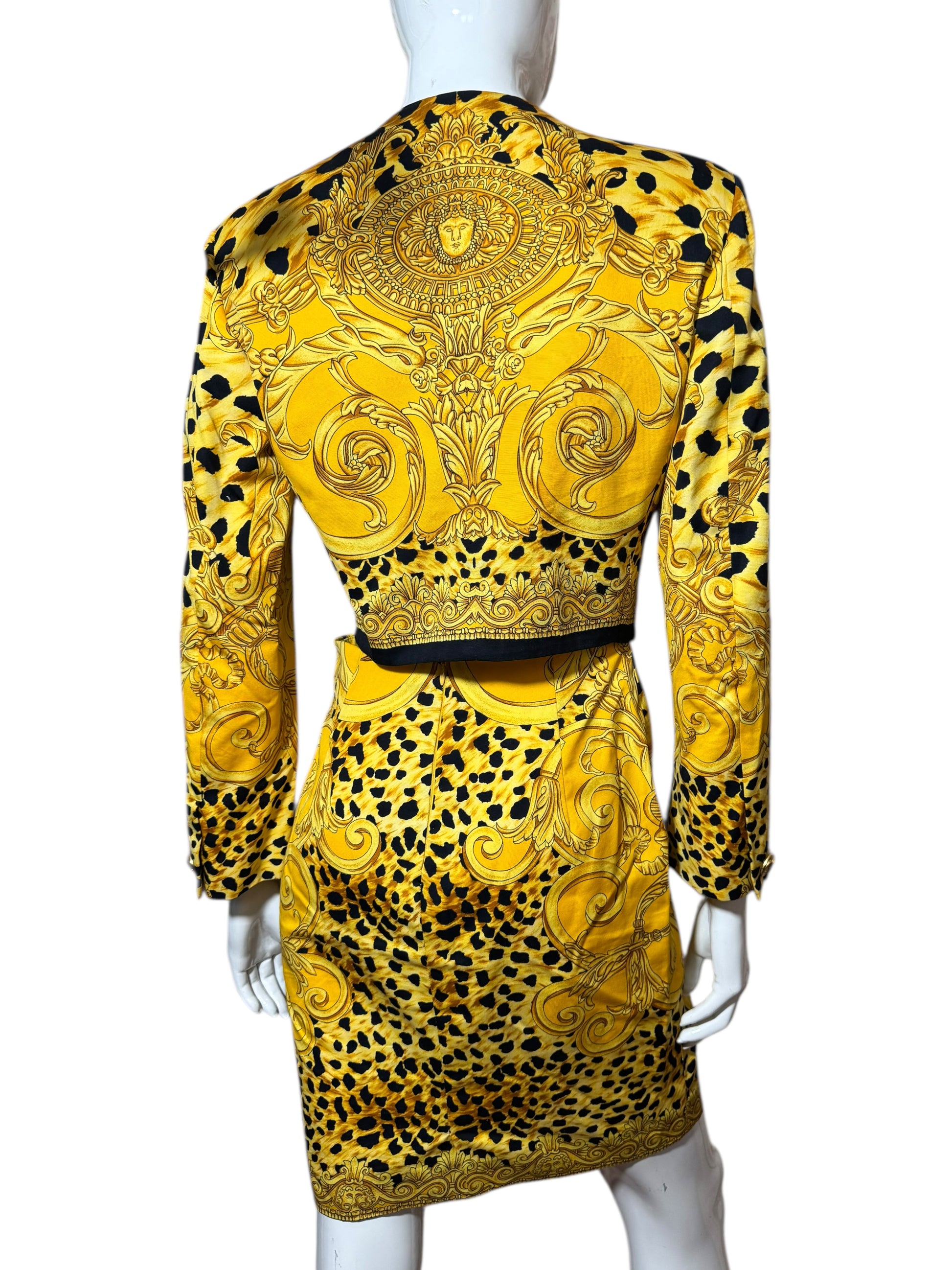 Completo vintage Istante by Gianni Versace anni ’90 – Giacca + Gonna con stampa barocca e animalier