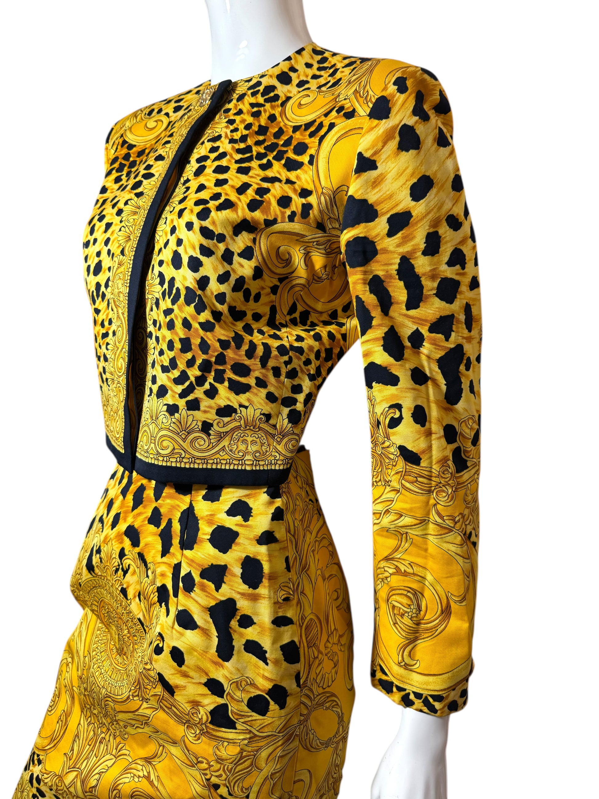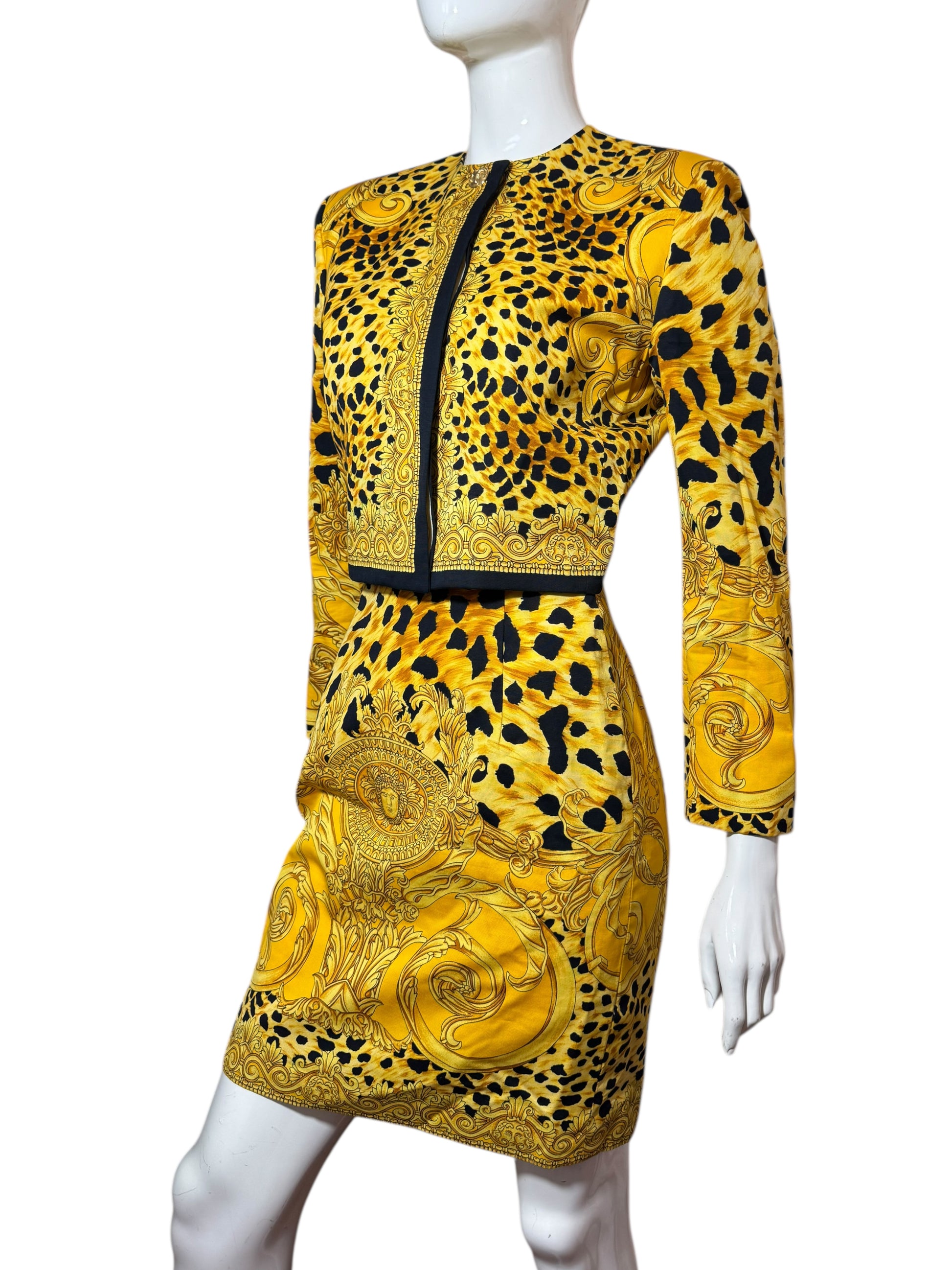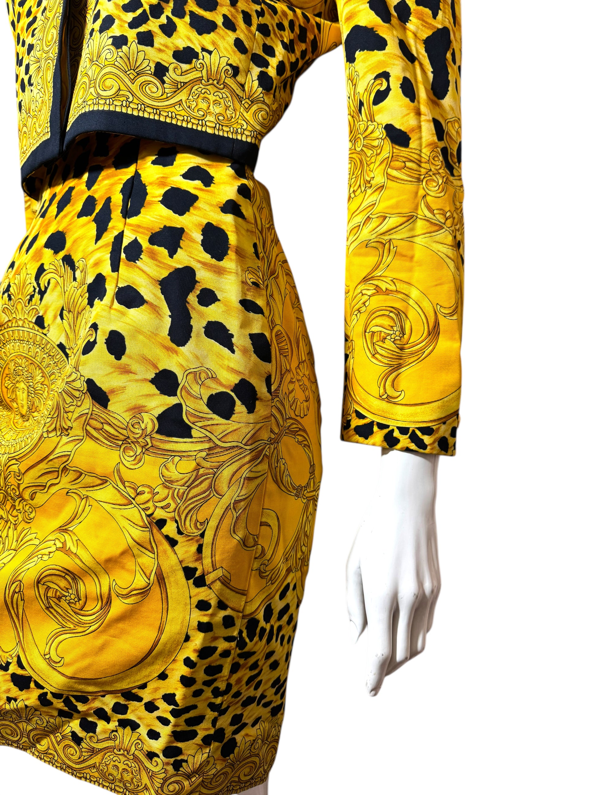 Completo vintage Istante by Gianni Versace anni ’90 – Giacca + Gonna con stampa barocca e animalier