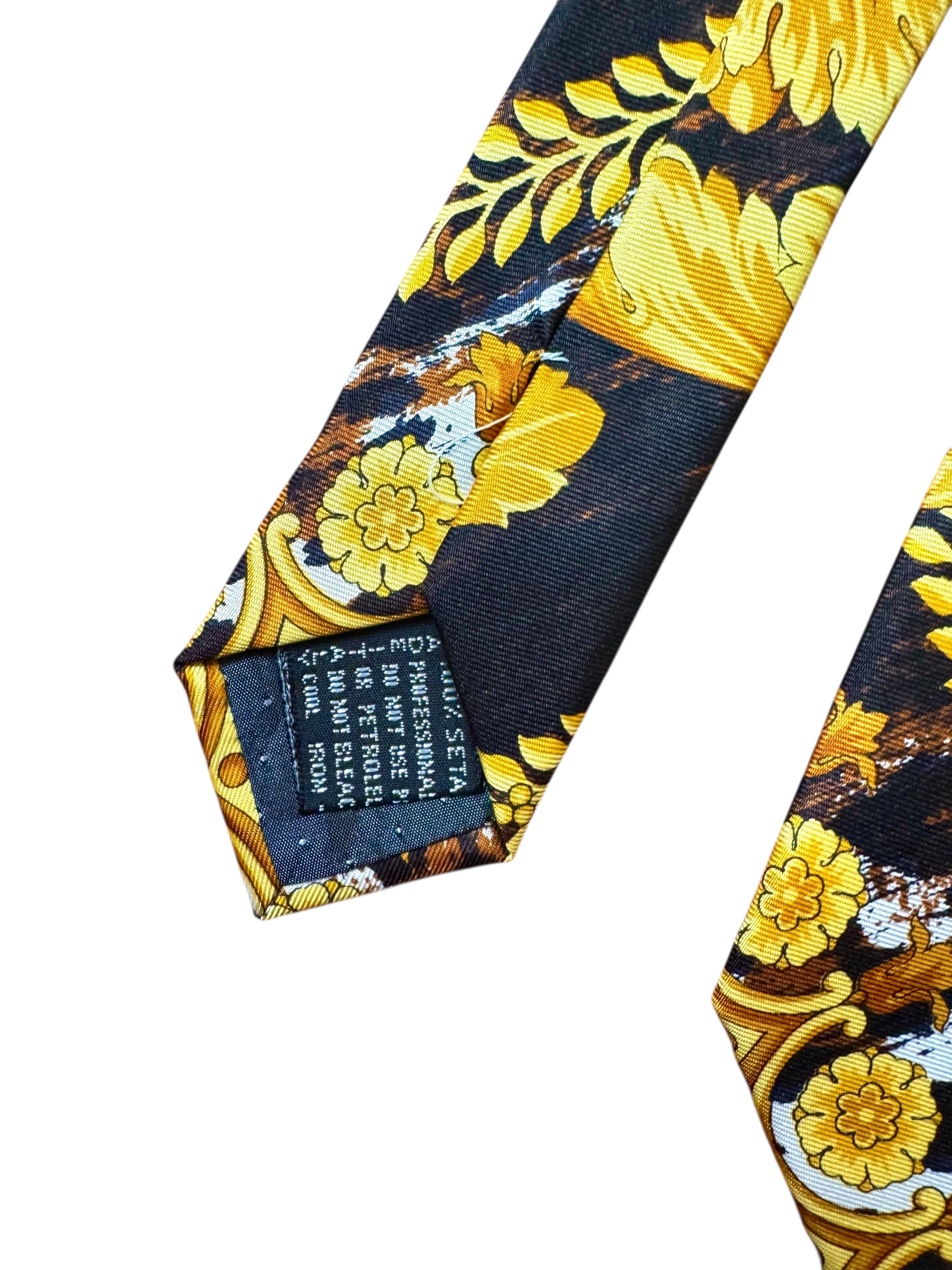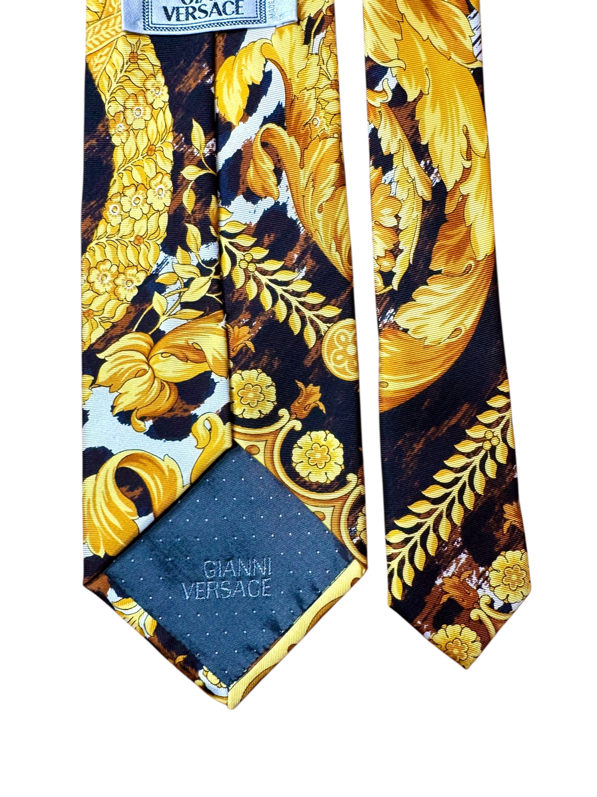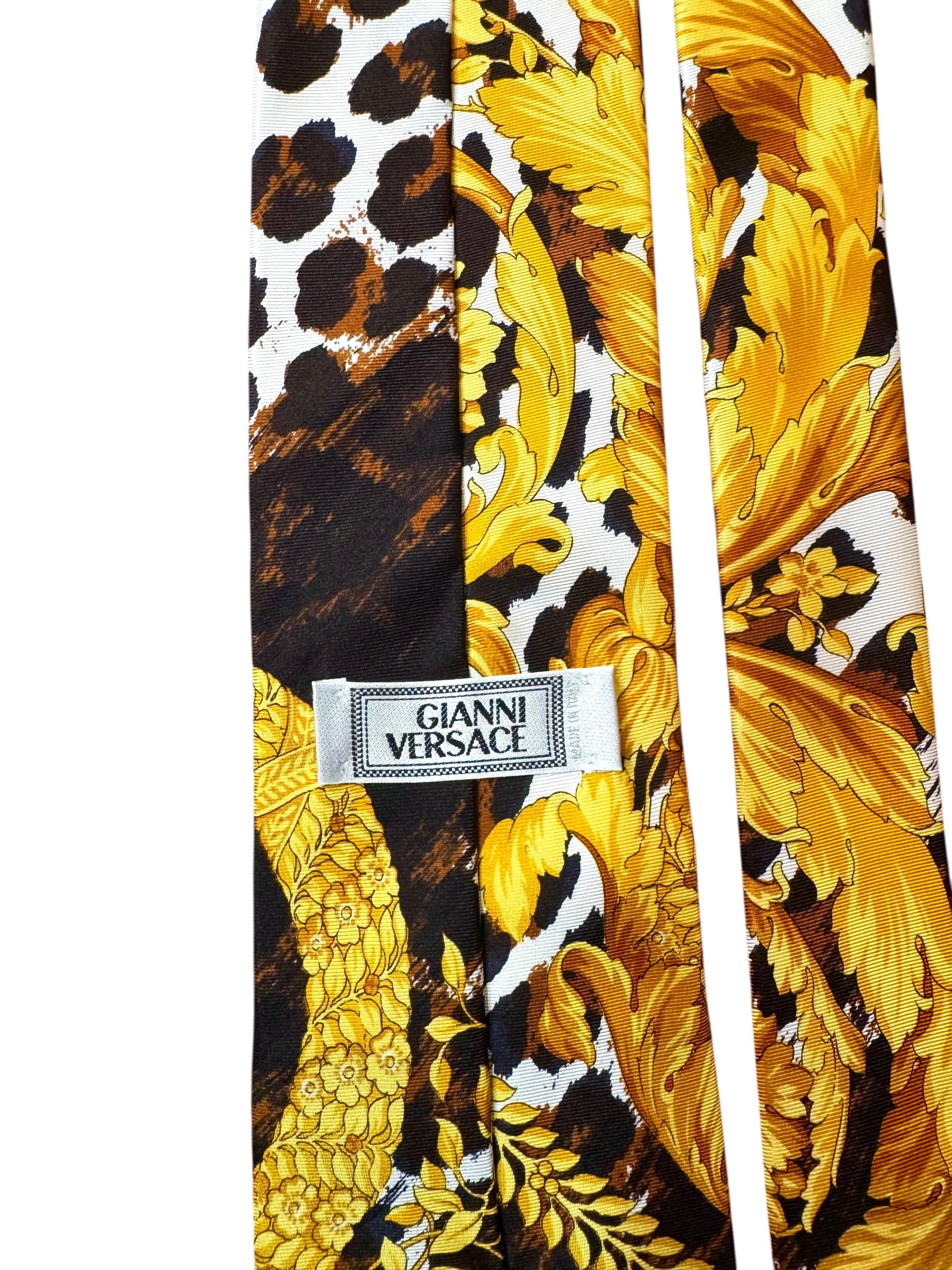 Cravatta vintage Gianni Versace seta stampa Wild Barocco animalier