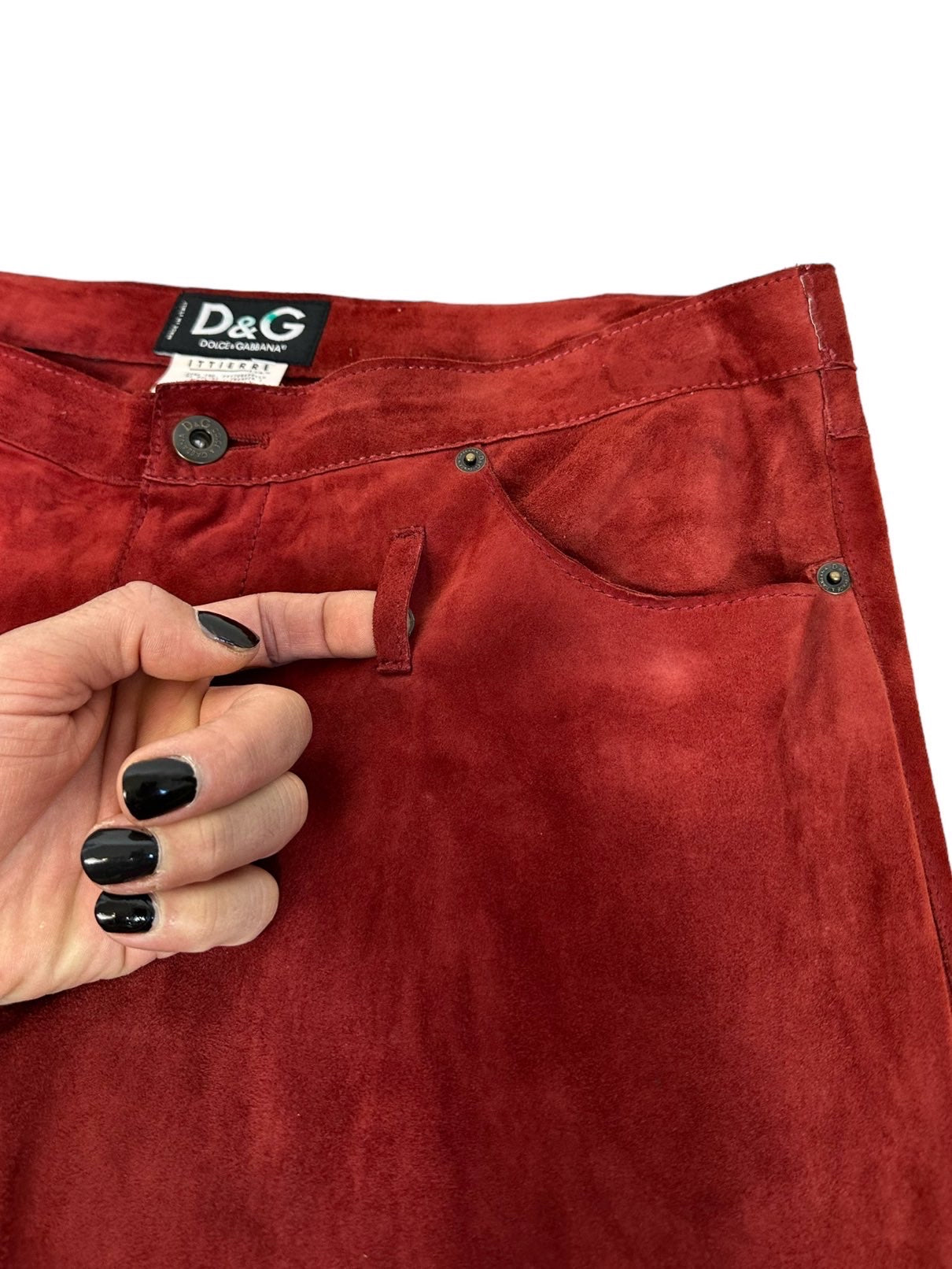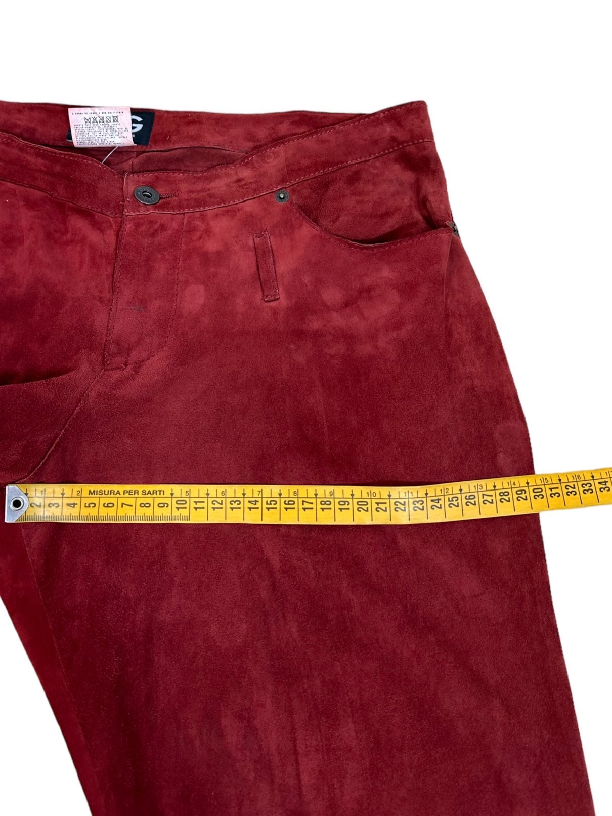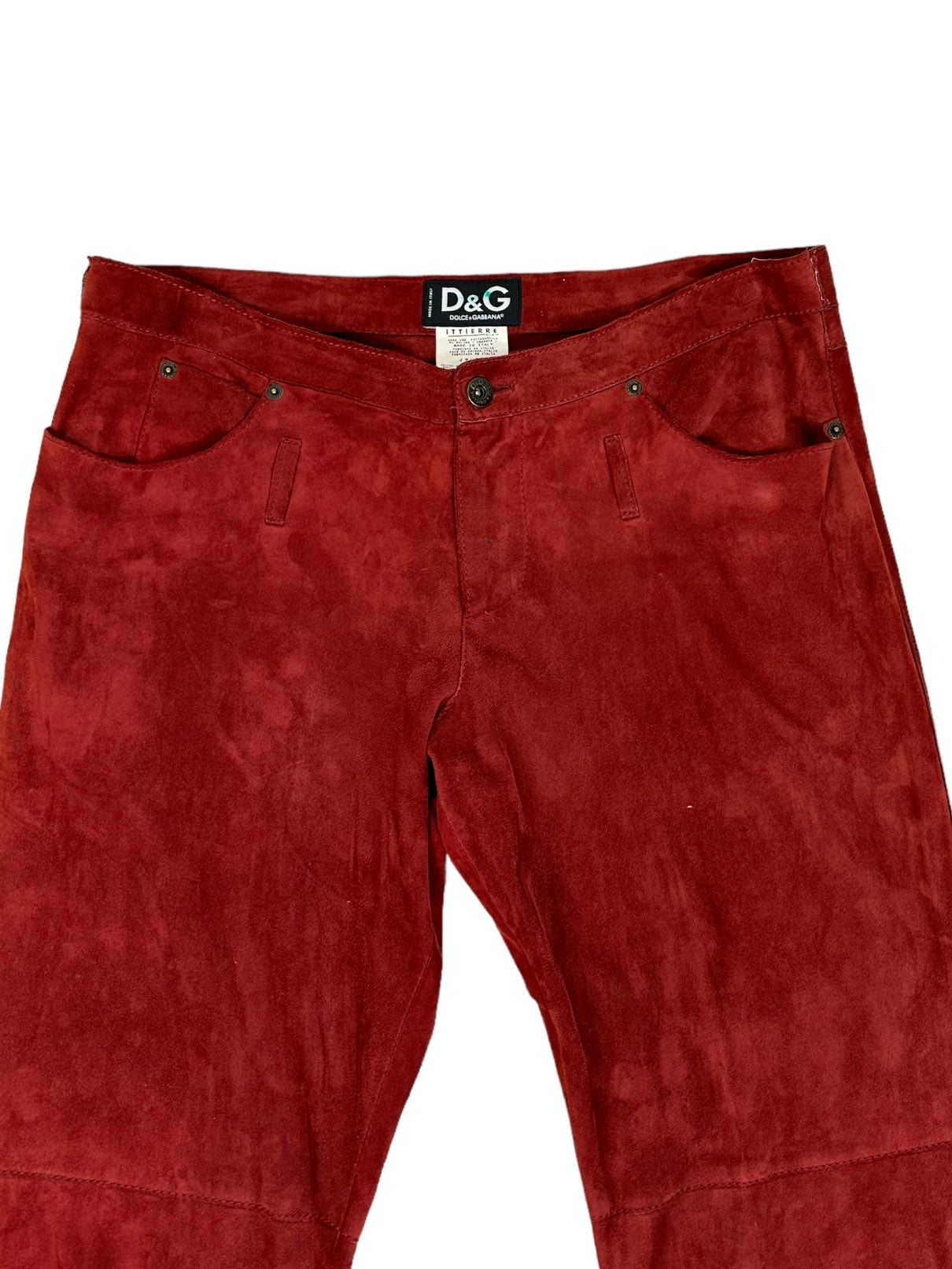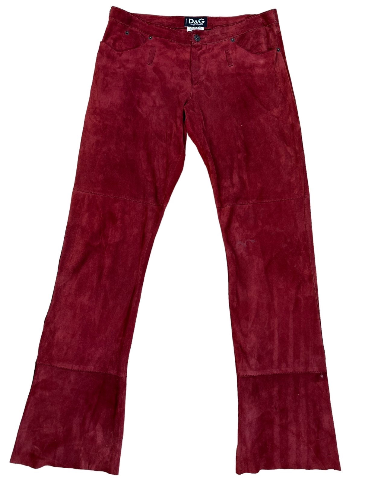D&G pantaloni in camoscio bordeaux anni 2000s a vita bassa con tasche laterali. Presentano dei lievi segni di usura poco visibili. Tg. L